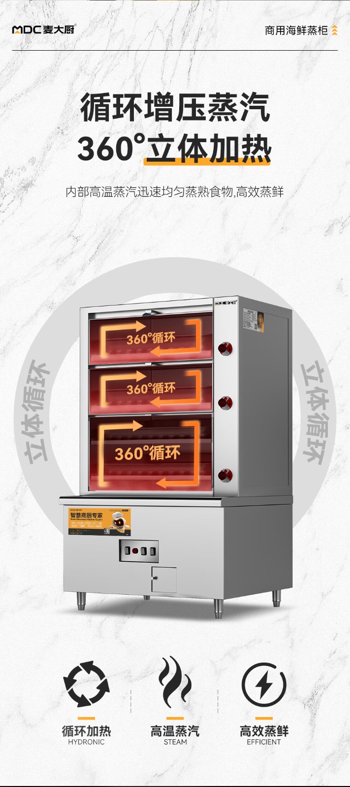 麥大廚商用蒸柜1000mm電熱款三門海鮮蒸柜