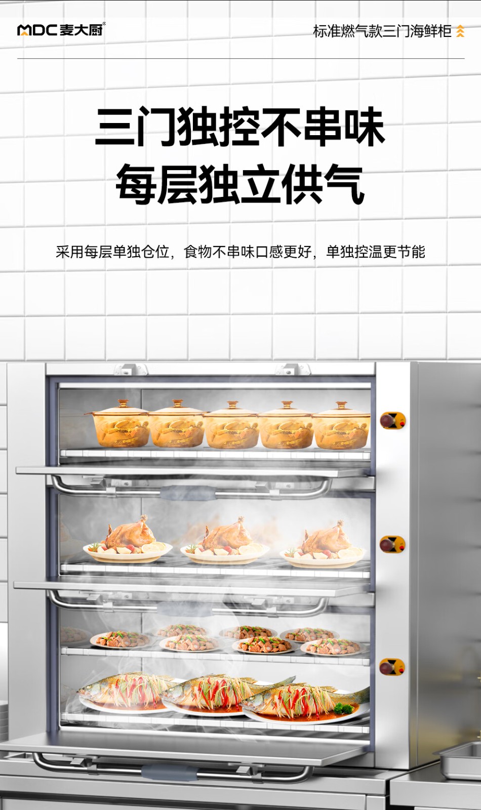 麥大廚商用蒸柜900mm標準燃氣款三門海鮮蒸柜