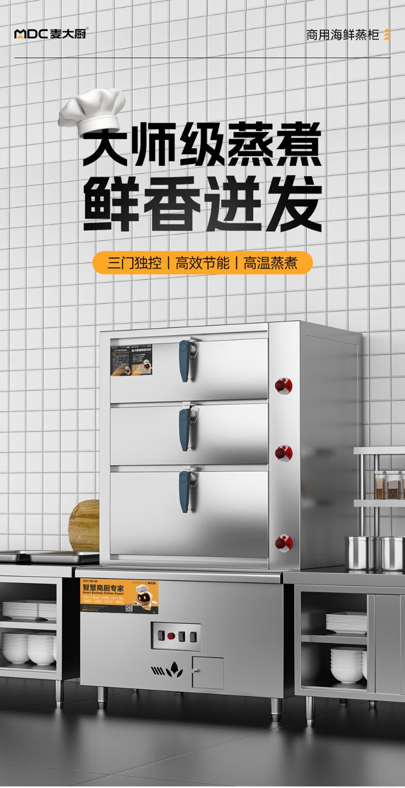 麥大廚商用蒸柜1200mm燃氣款三門海鮮蒸柜