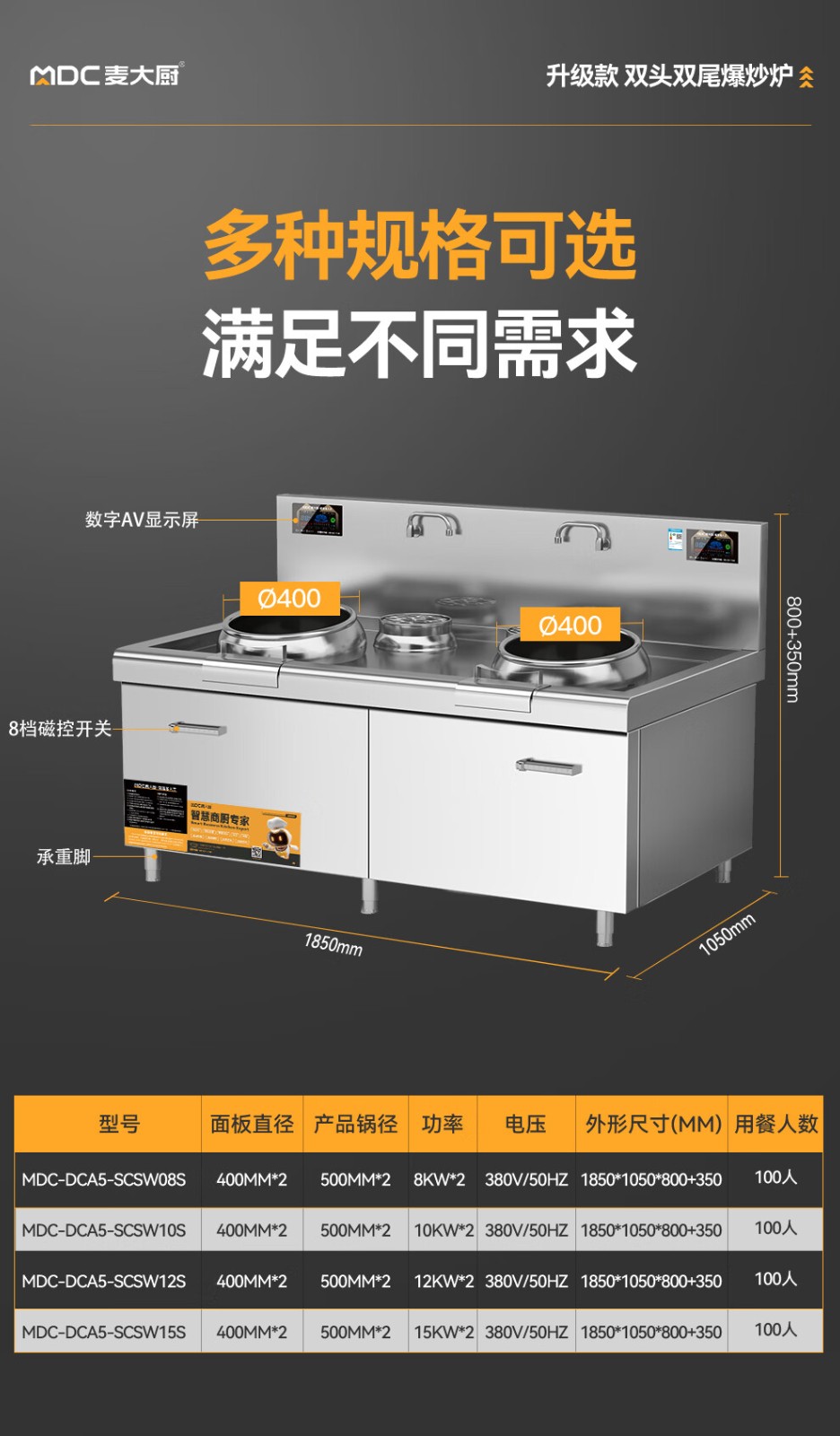 - 更多MDC商用雙頭單尾小炒爐規格咨詢在線客服
