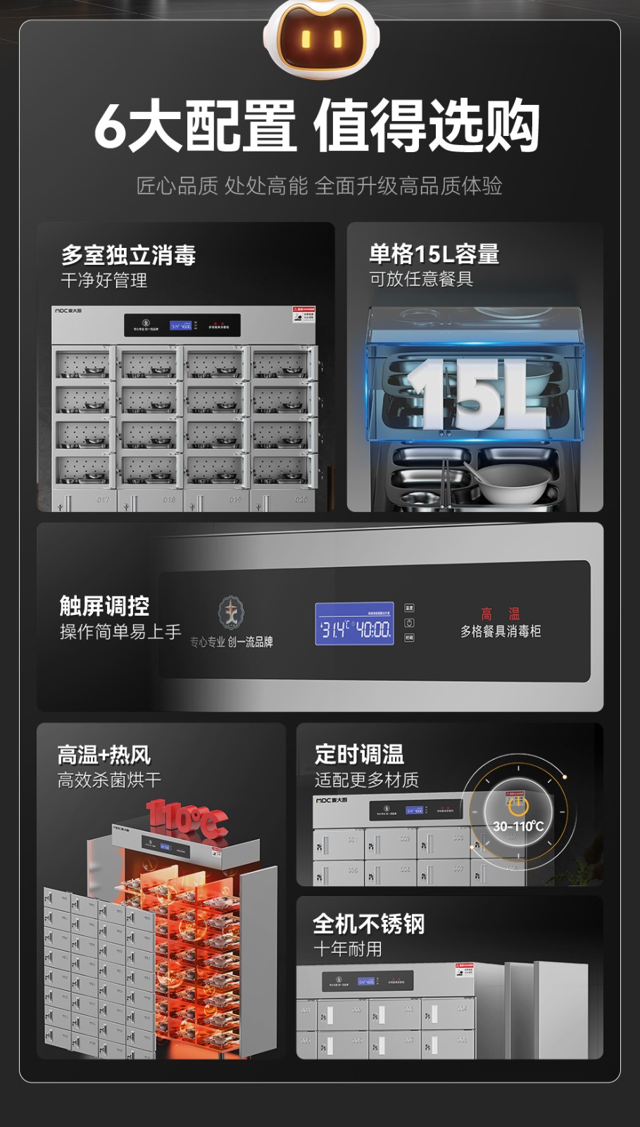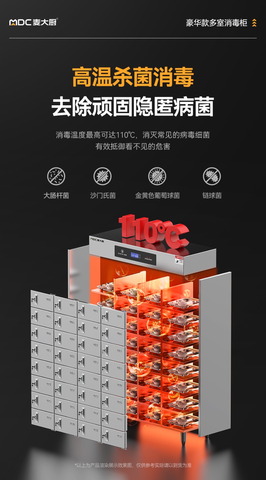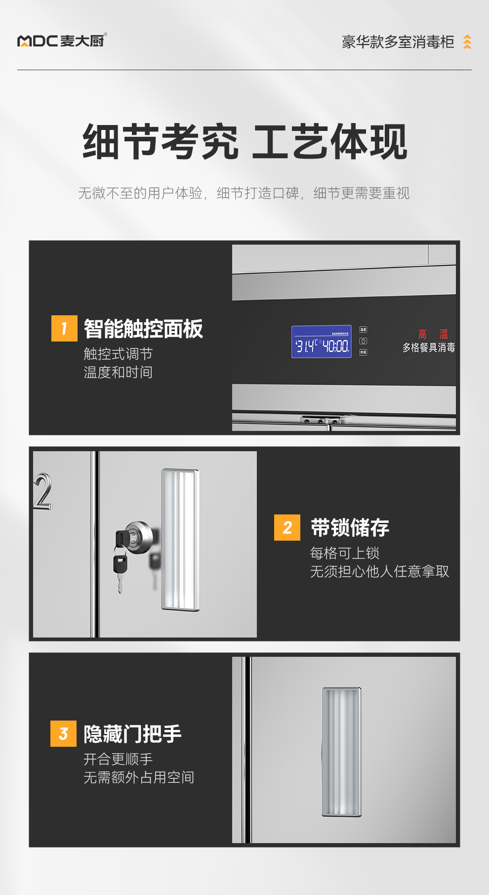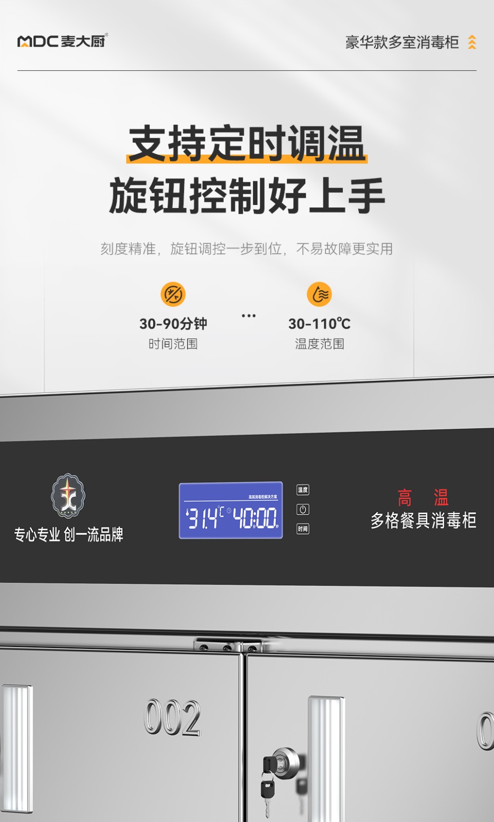 麥大廚豪華觸屏B款熱風(fēng)循環(huán)32室高溫消毒柜(光波+熱風(fēng))