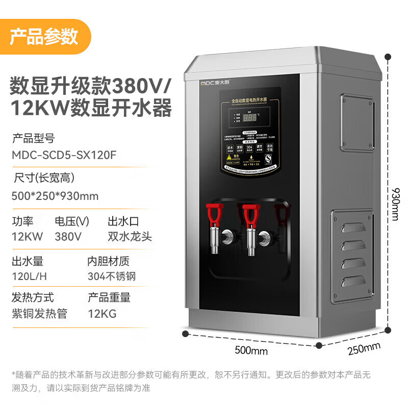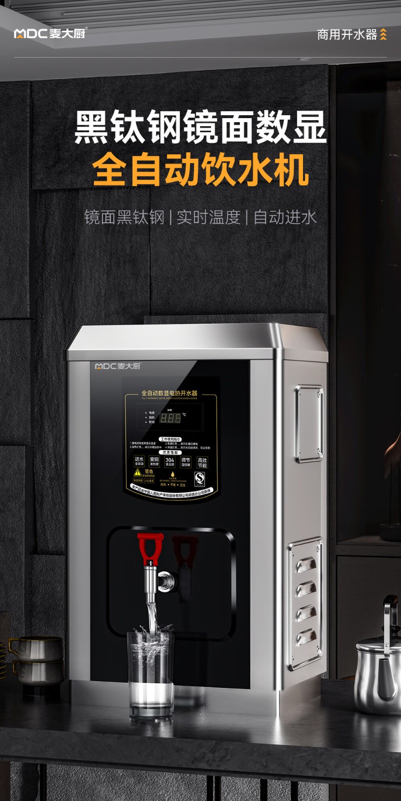 麥大廚黑鈦鋼數顯升級款速熱開水器商用120-210L