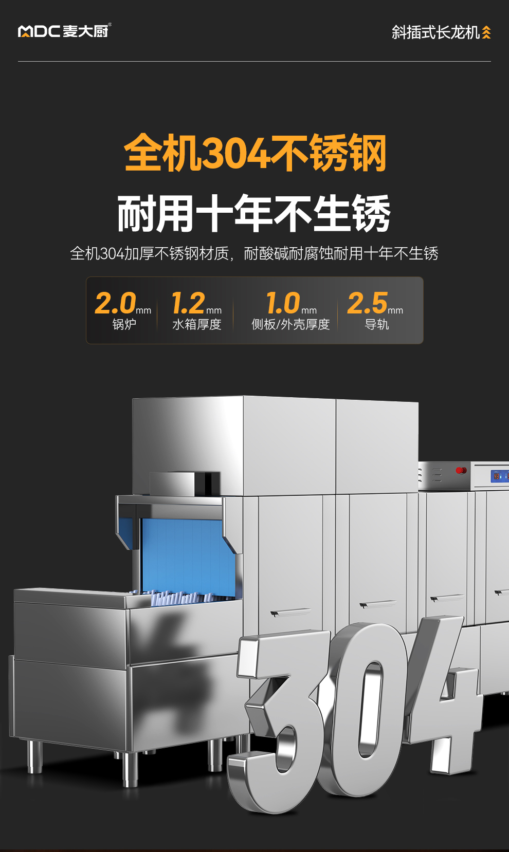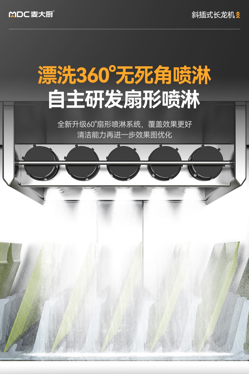 麥大廚豪華款3.8m斜插式雙缸雙噴淋洗碗機商用