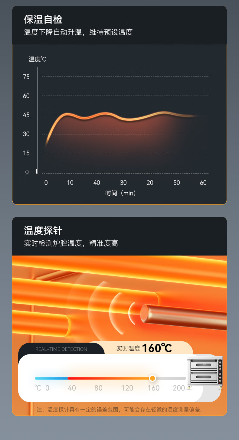 麥大廚標(biāo)準(zhǔn)款兩層兩盤旋鈕控溫定時(shí)烤箱6.4KW