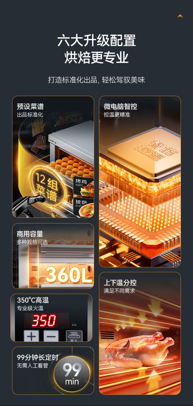 麥大廚豪華款三層六盤智能控溫上下獨立烤箱19.8KW