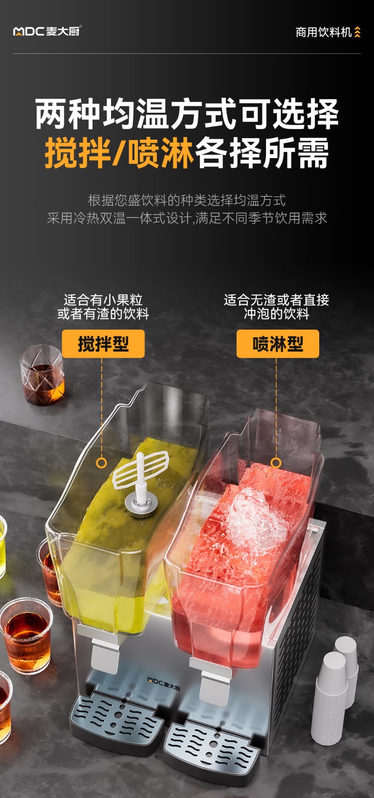 麥大廚220V標(biāo)準(zhǔn)款雙缸冷熱噴淋式飲料機(jī)商用235W