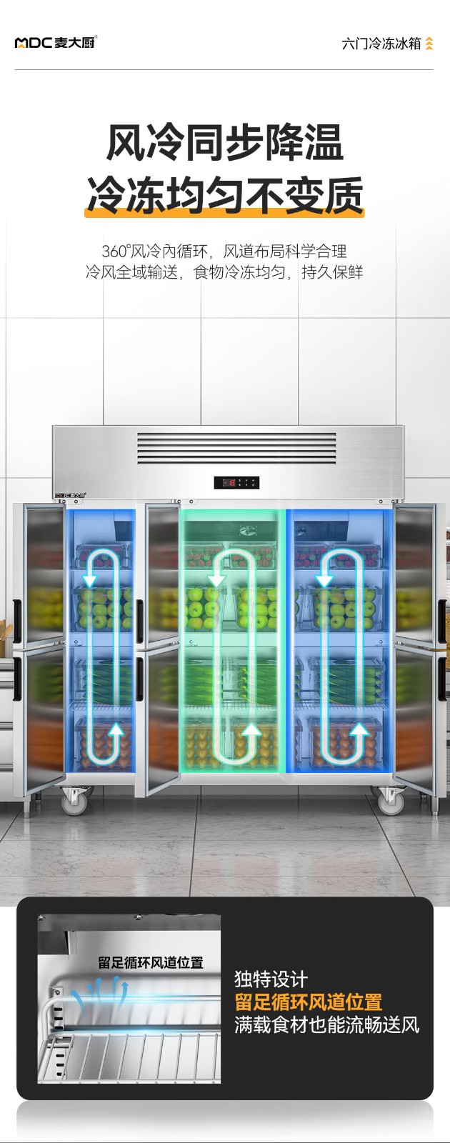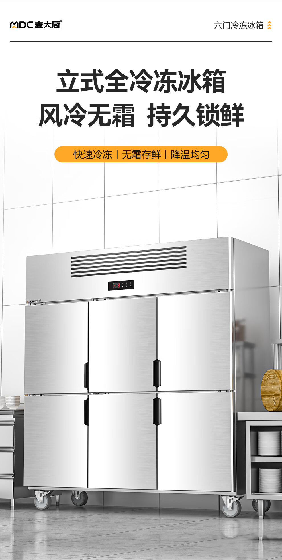 麥大廚經濟款六門風冷立式冷凍柜1146W
