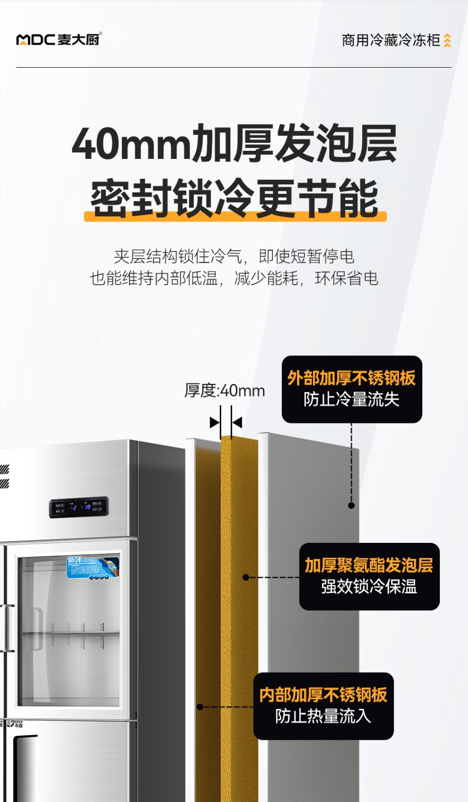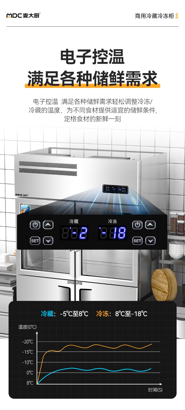 麥大廚標準款四門直冷上玻璃立式雙溫冰柜