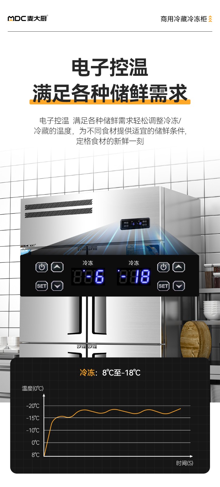 冷凍溫度范圍:8℃~-18℃