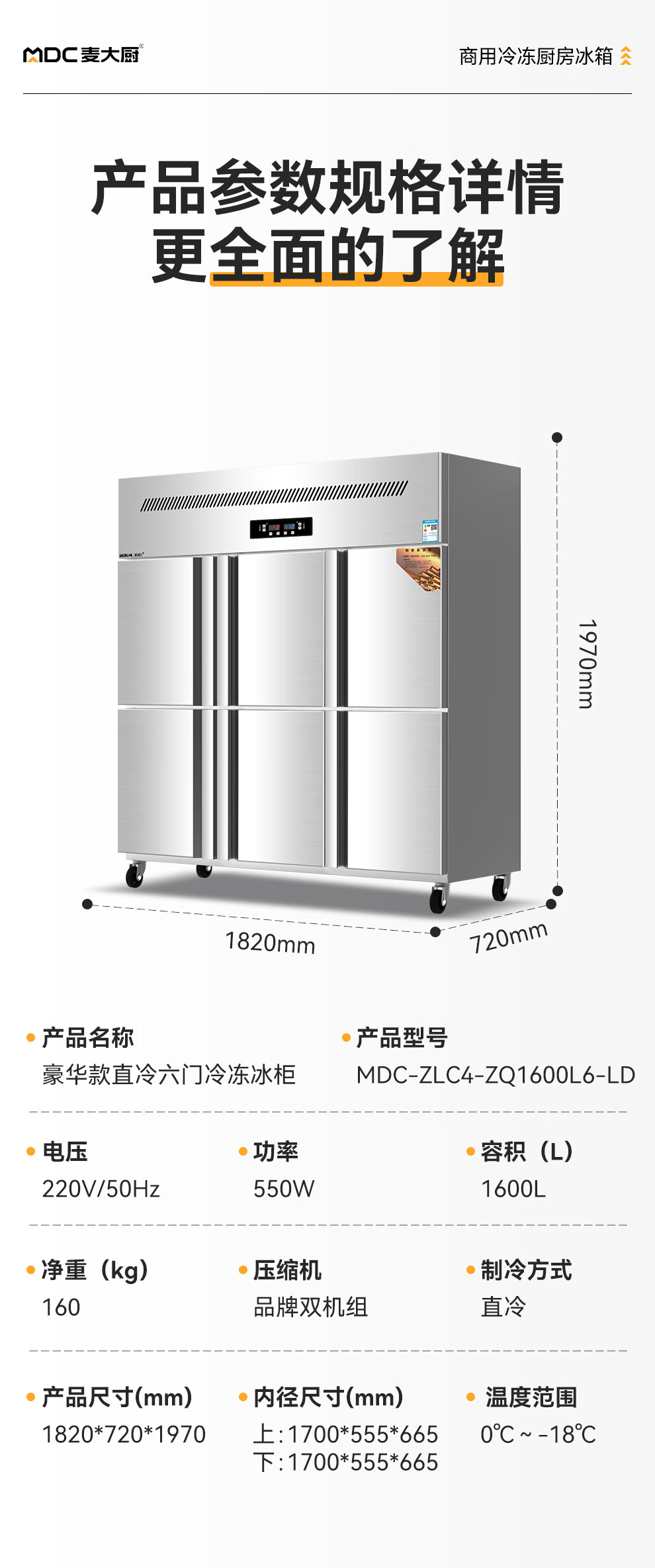 麥大廚豪華款六門直冷立式冷凍冰柜