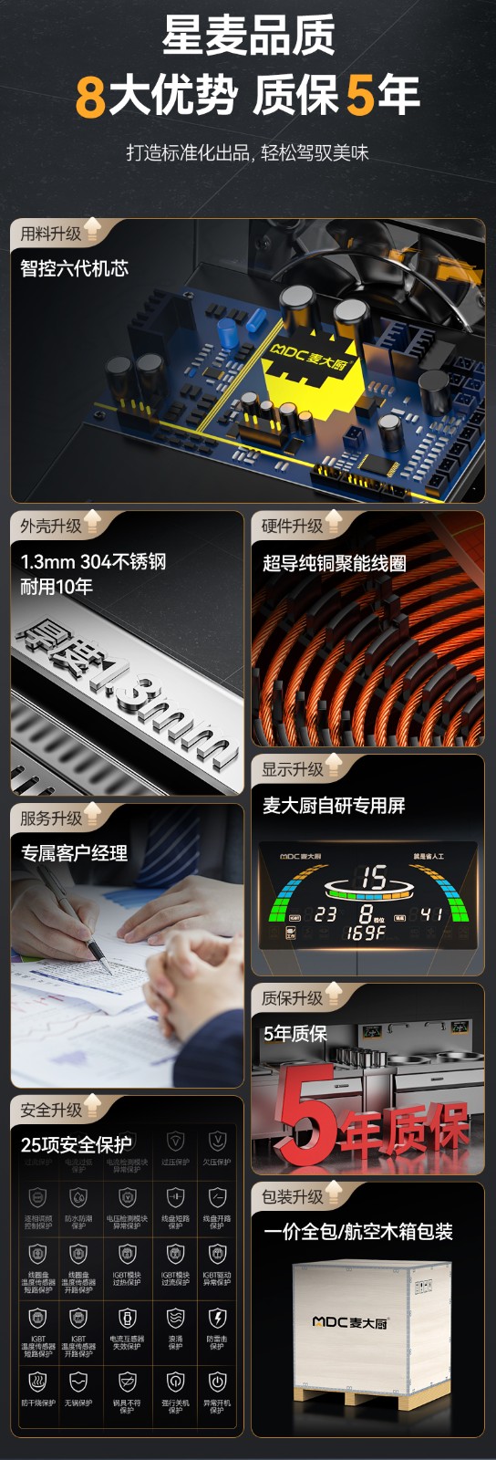 麥大廚星麥款304材質(zhì)電磁雙頭單尾小炒爐24kw
