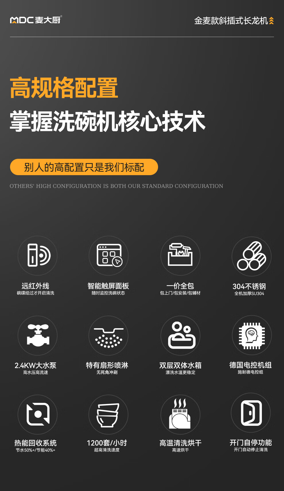 麥大廚金麥款斜插式觸屏熱回收2.95m雙缸雙噴洗碗機