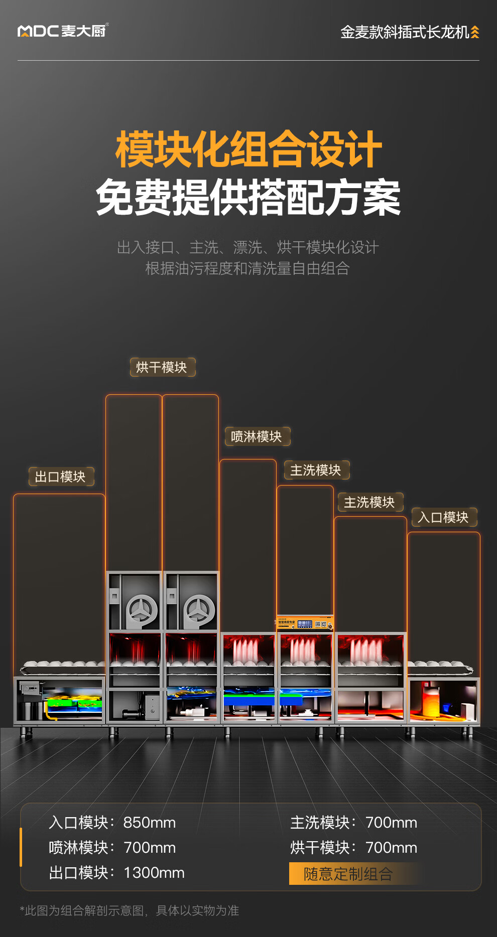 麥大廚金麥款斜插式觸屏熱回收4.45m雙缸雙噴單烘洗碗機