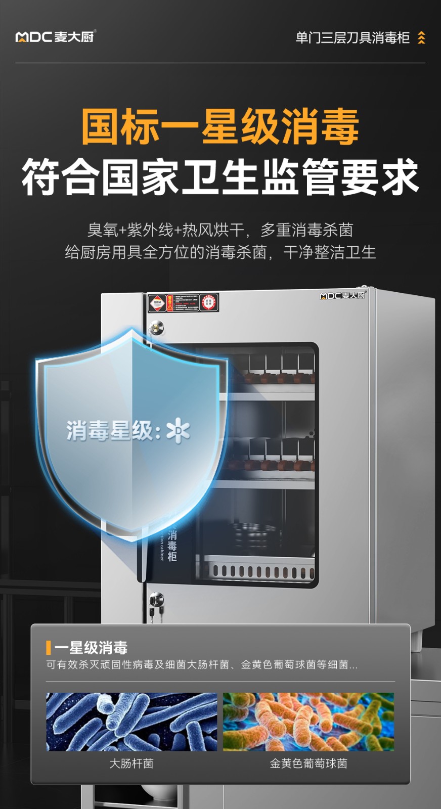 麥大廚智能款單門三層臭氧紫外線熱風循環消毒柜