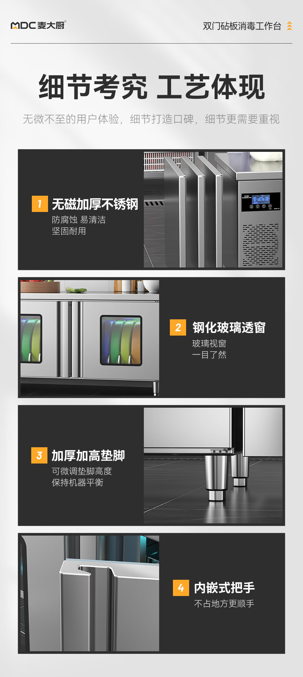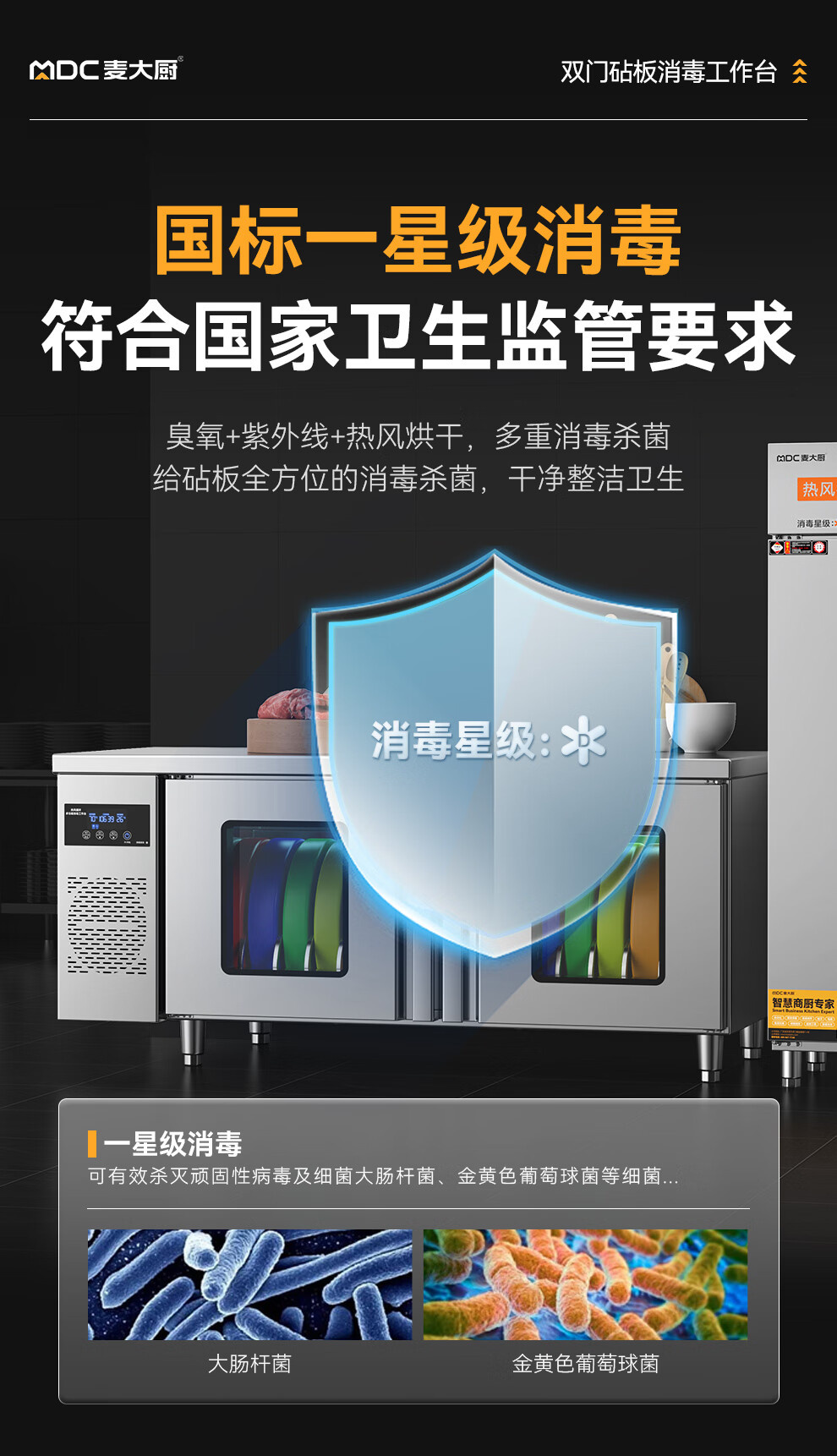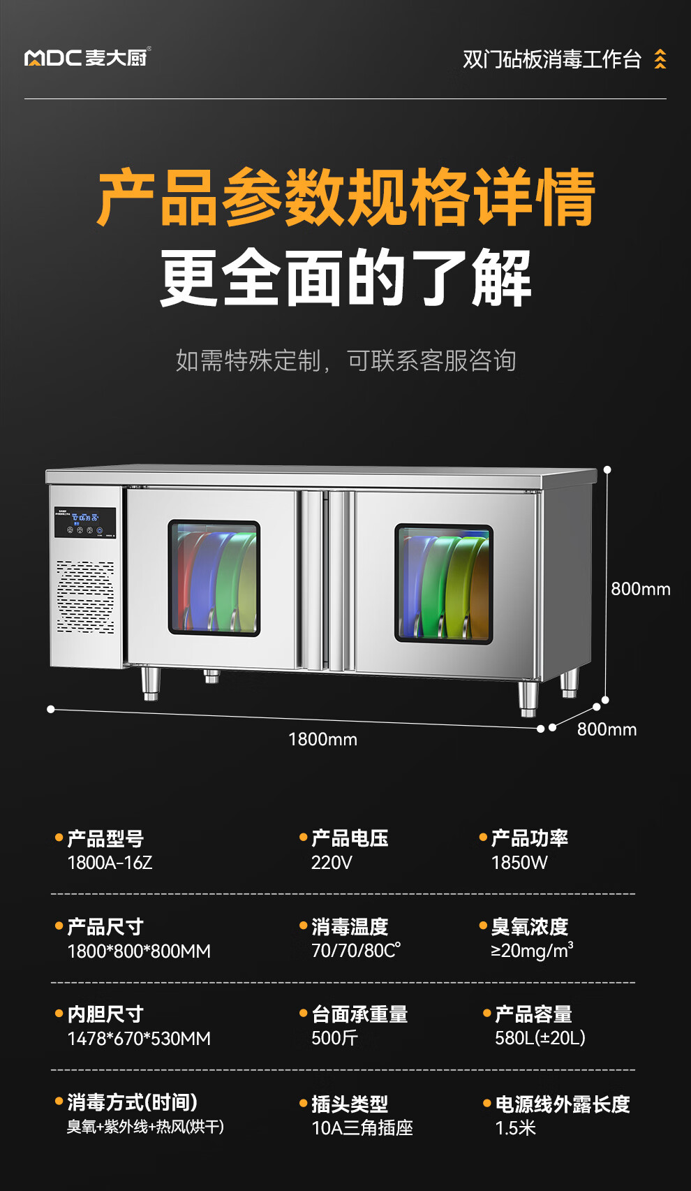 麥大廚1.8m雙門砧板組合臭氧紫外線熱風循環消毒工作臺