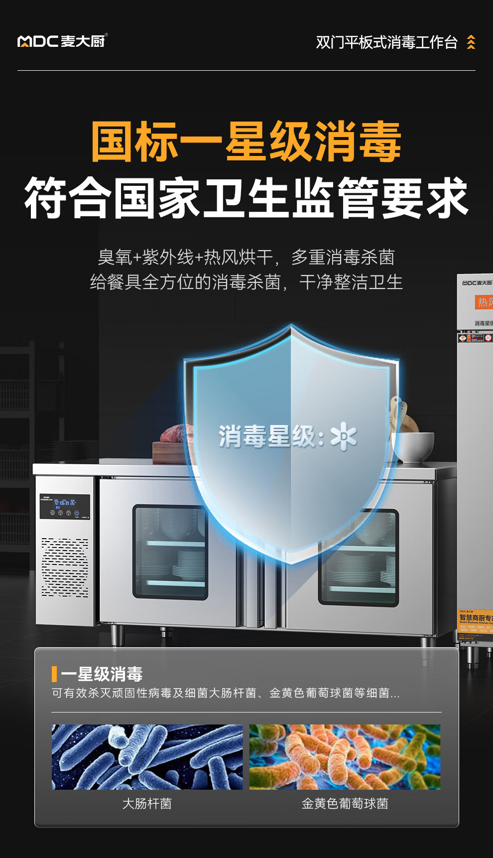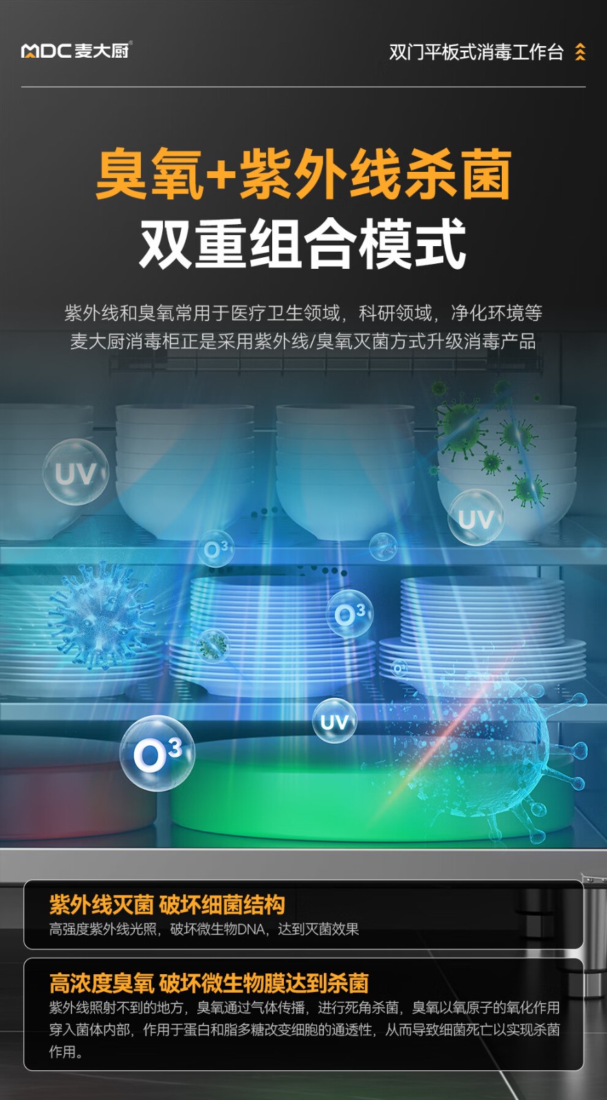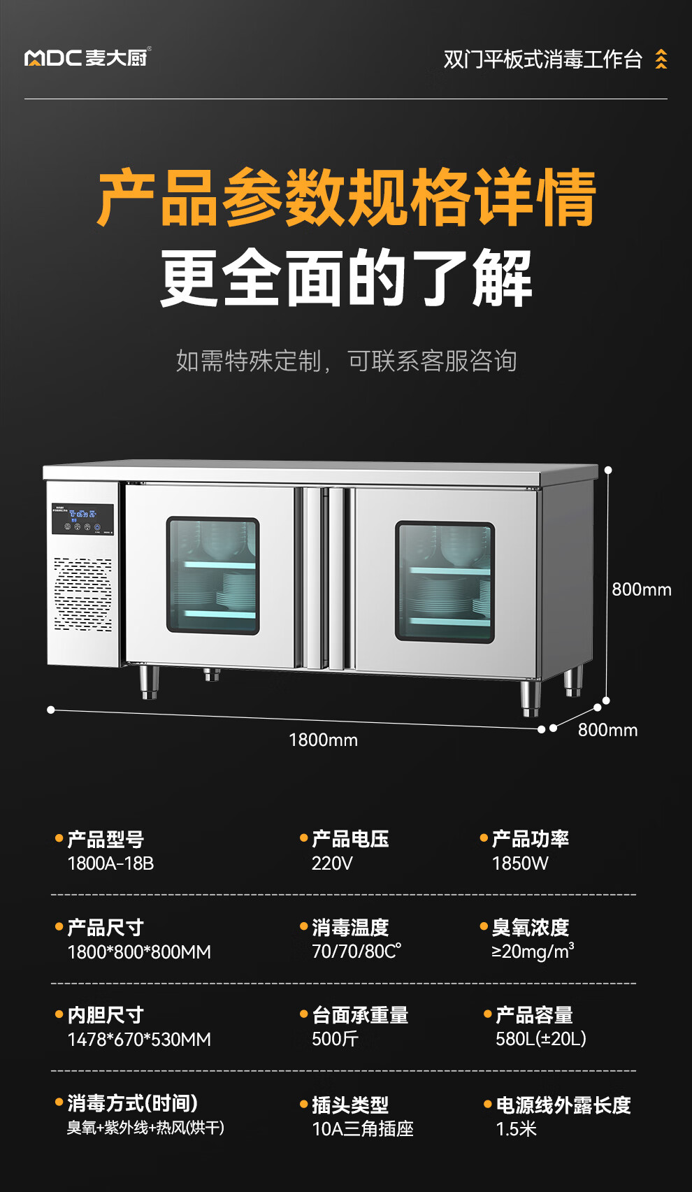 麥大廚1.8m雙門平板式臭氧紫外線熱風循環消毒工作臺
