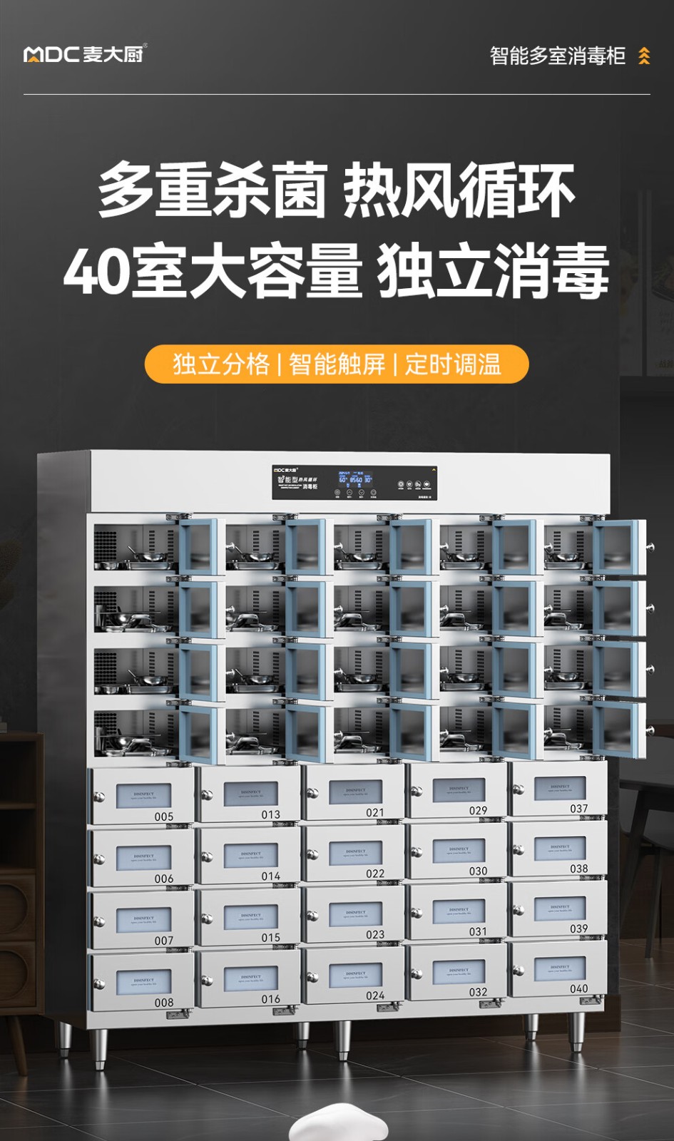麥大廚40室智能觸屏型熱風循環中溫消毒柜4.5KW