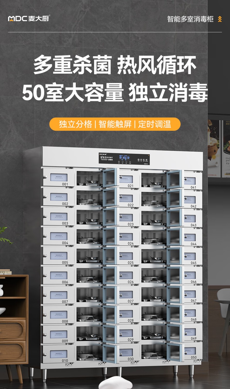 麥大廚50室智能觸屏型熱風循環中溫消毒柜4.5KW