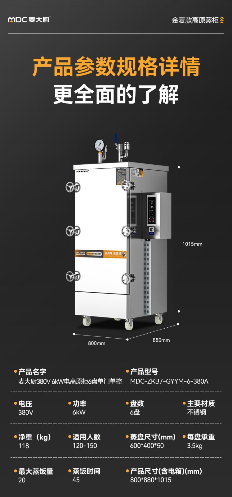 - 更多MDC商用高原蒸柜規格咨詢在線客服