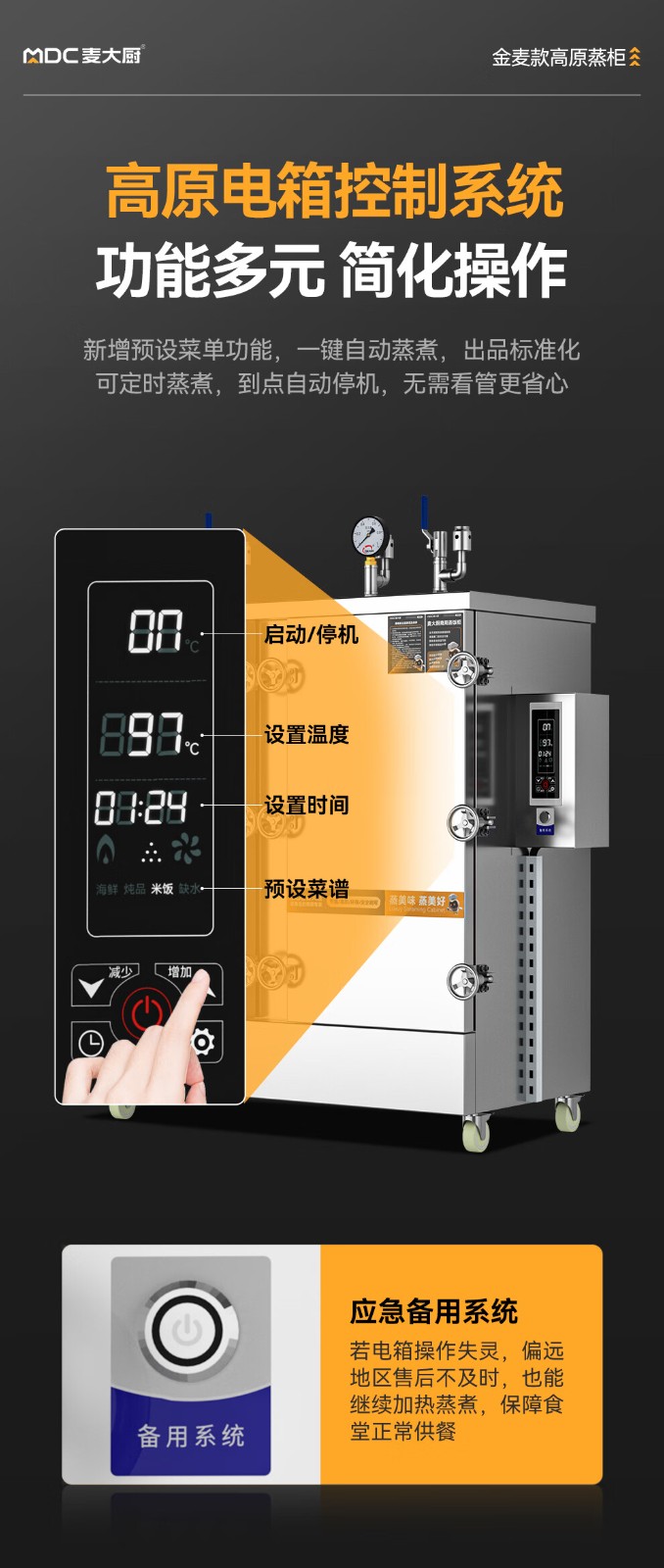 首頁 > 商廚產(chǎn)品 > 蒸飯柜 > 金麥款高原蒸柜 >麥大廚金麥款24盤電熱380V單門高原蒸柜24KW