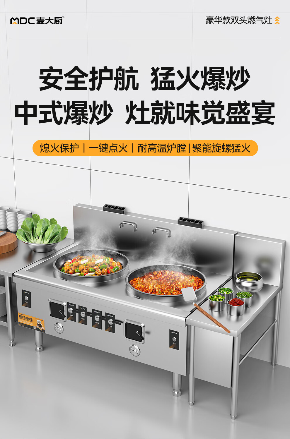 麥大廚燃氣猛火大鍋灶豪華款燃氣雙頭大炒爐800