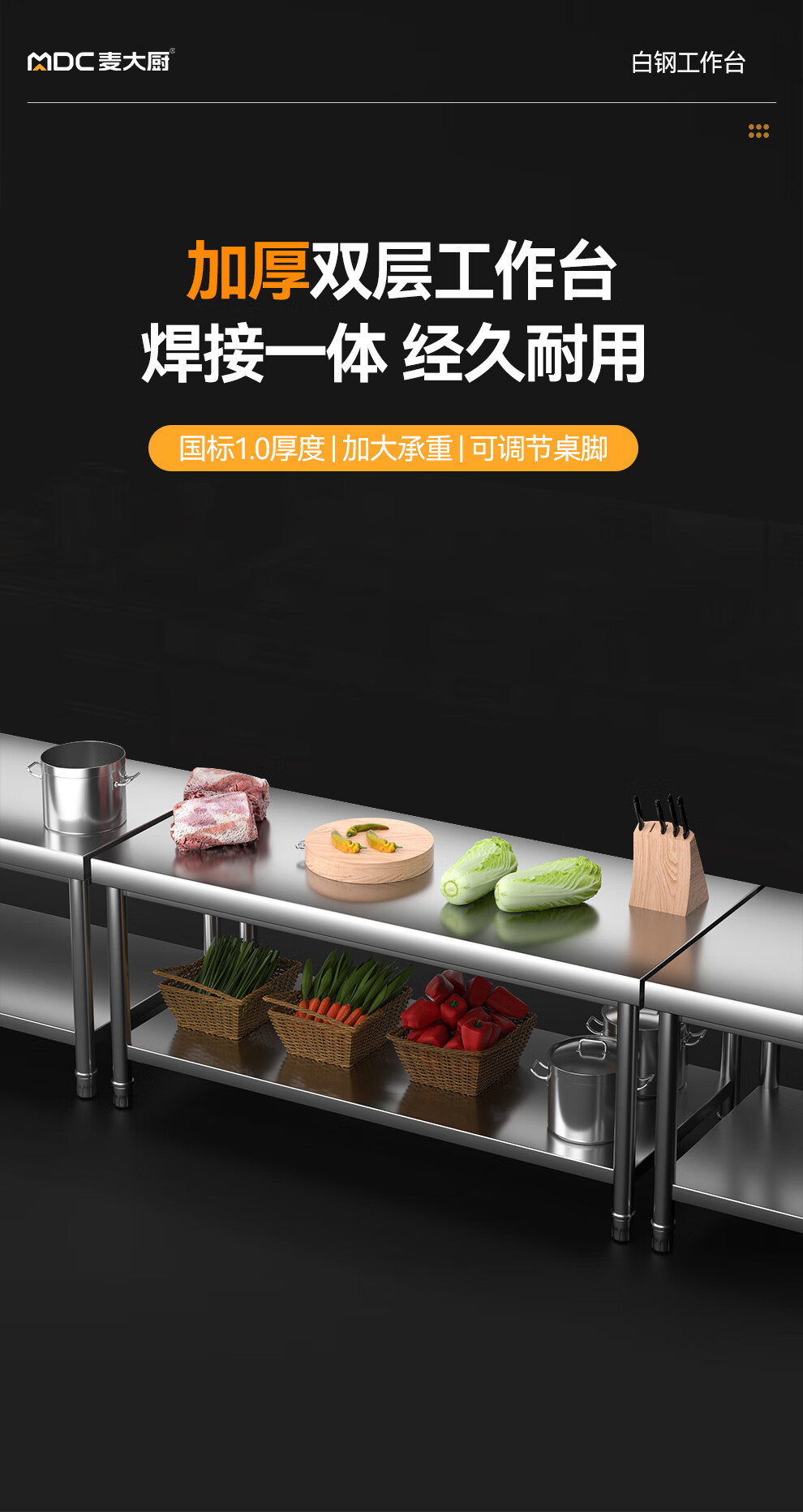 麥大廚1.0m升級款不銹鋼工作臺打荷臺雙層工作臺
