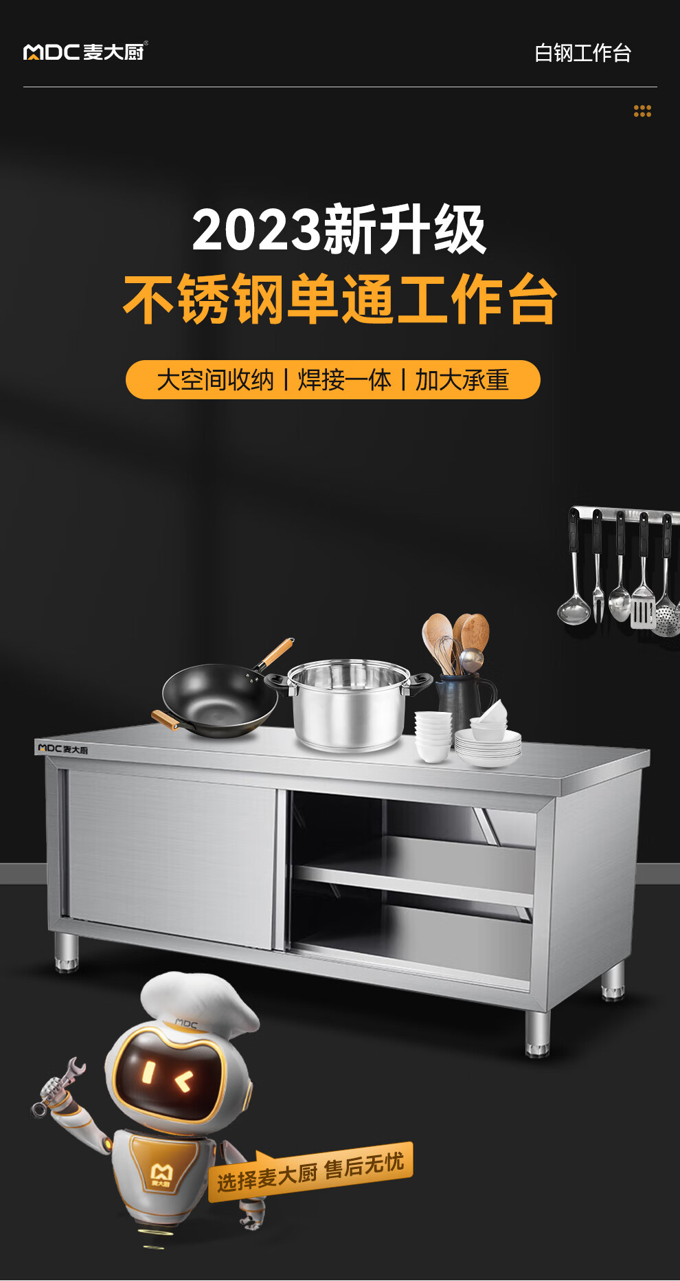 麥大廚1.2m升級款不銹鋼工作臺單通工作臺帶靠背