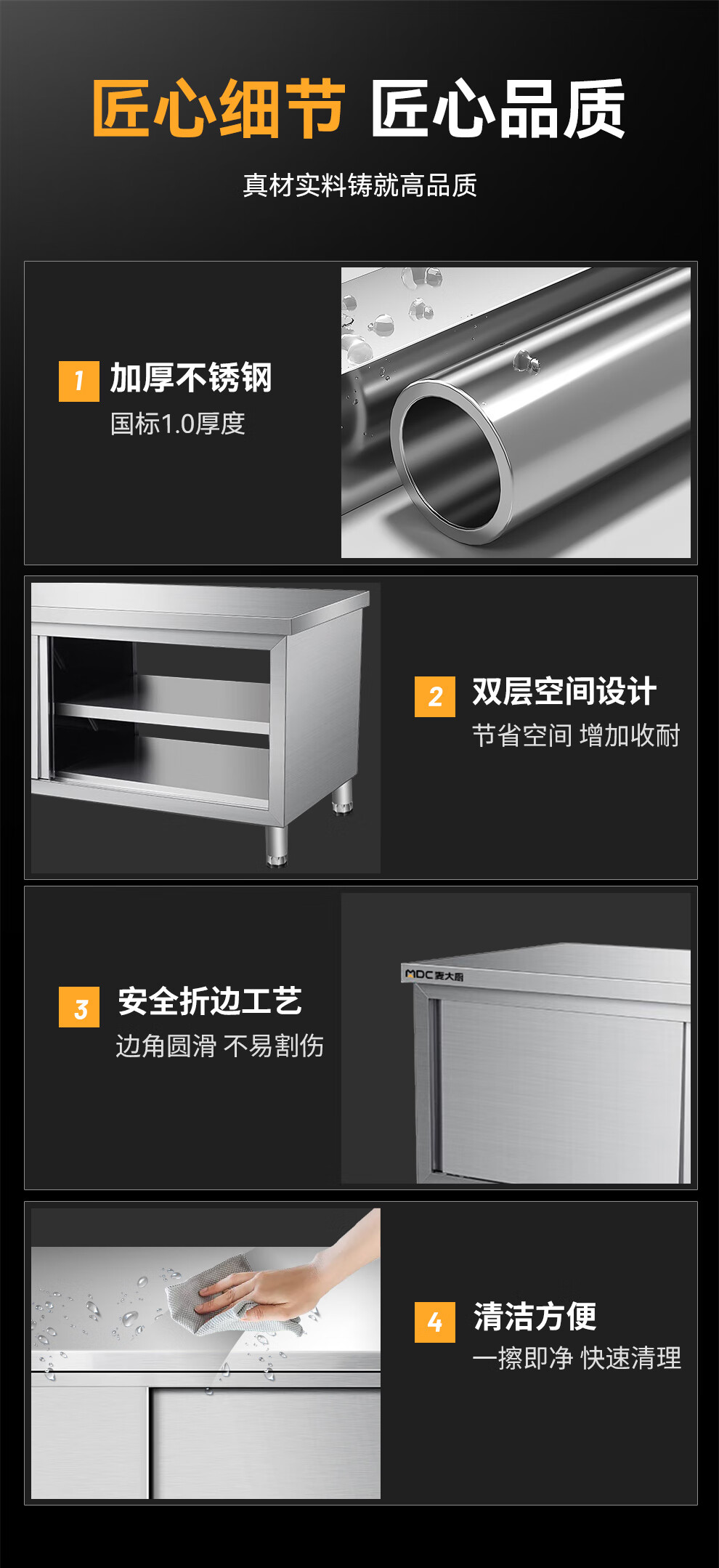 麥大廚1.5m升級款不銹鋼工作臺雙通工作臺帶靠背
