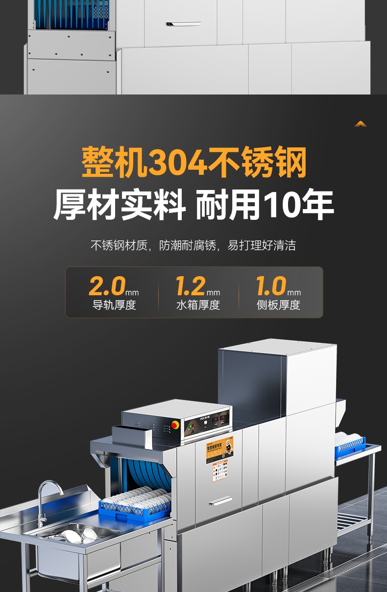 麥大廚2.55米通道式單缸雙噴單烘干商用洗碗機