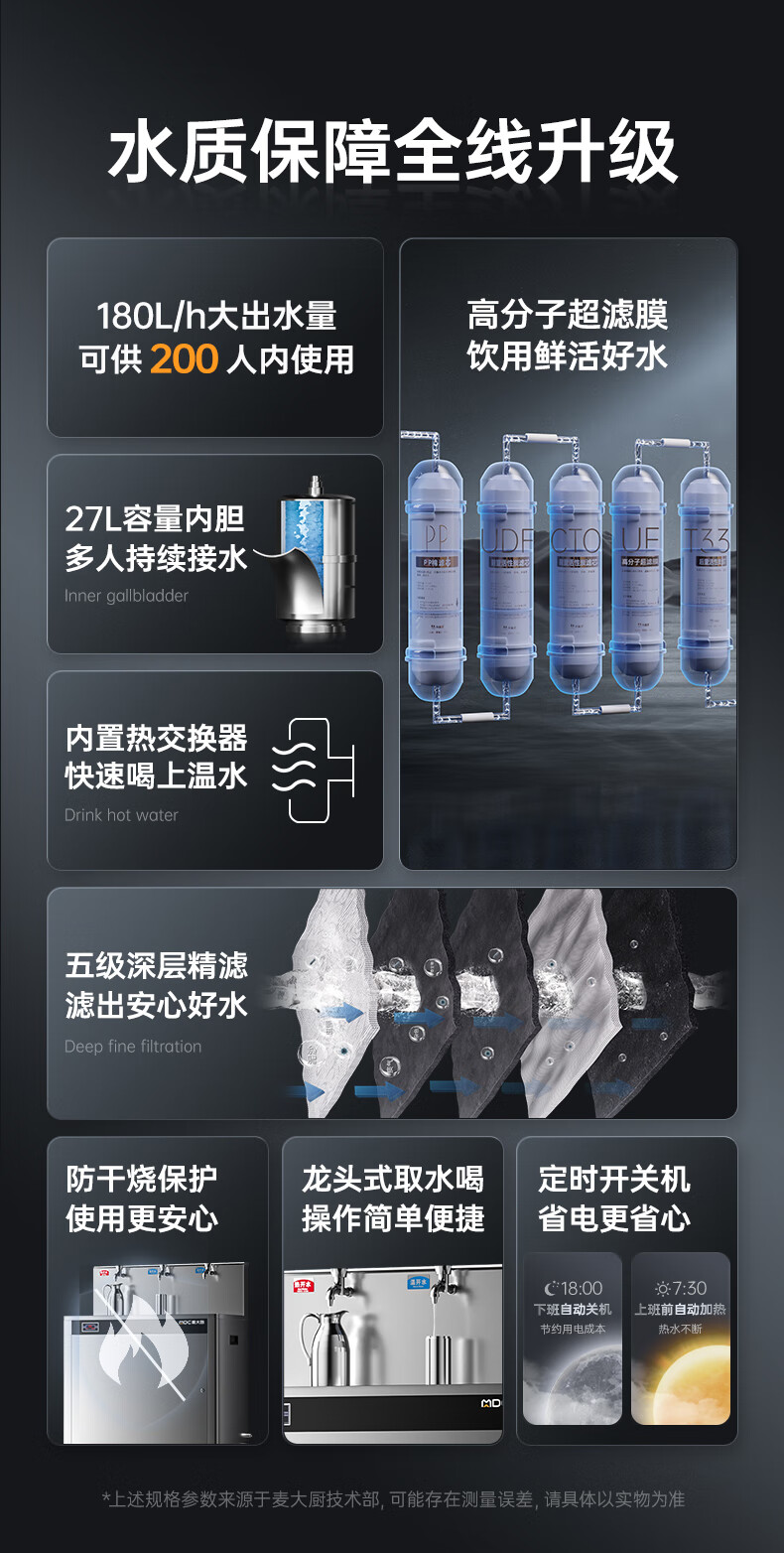 麥大廚3KW高背龍頭飲水機一開二溫快接五級超濾直飲機