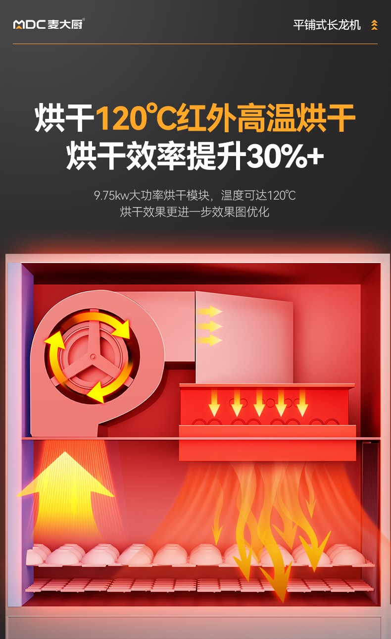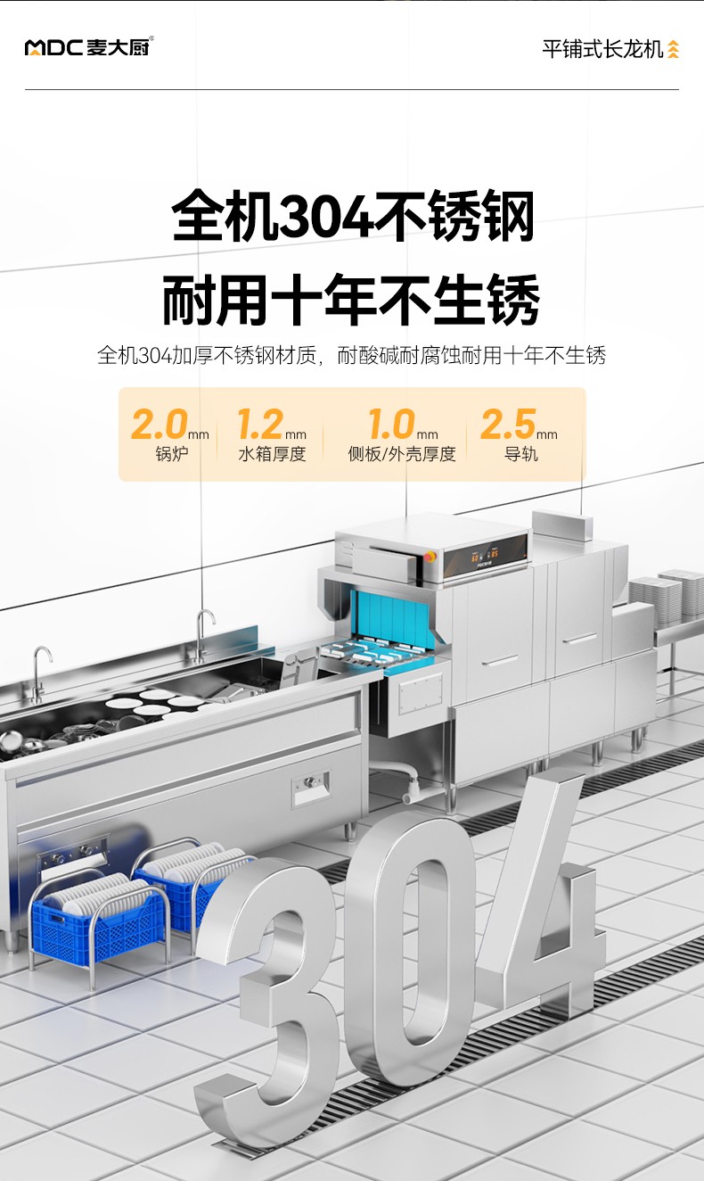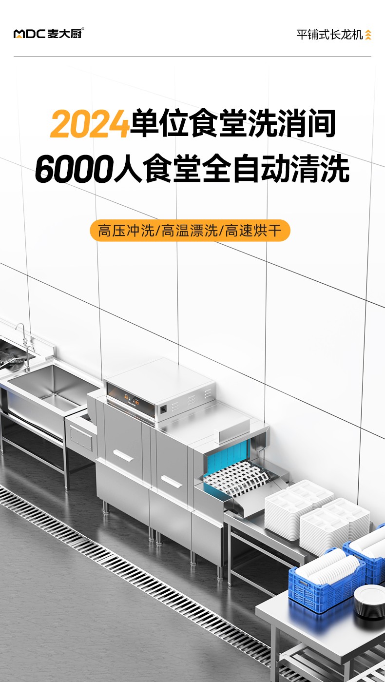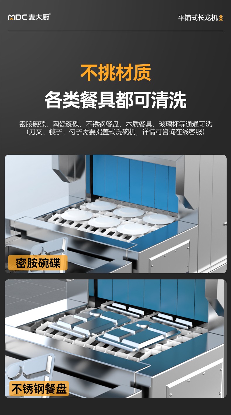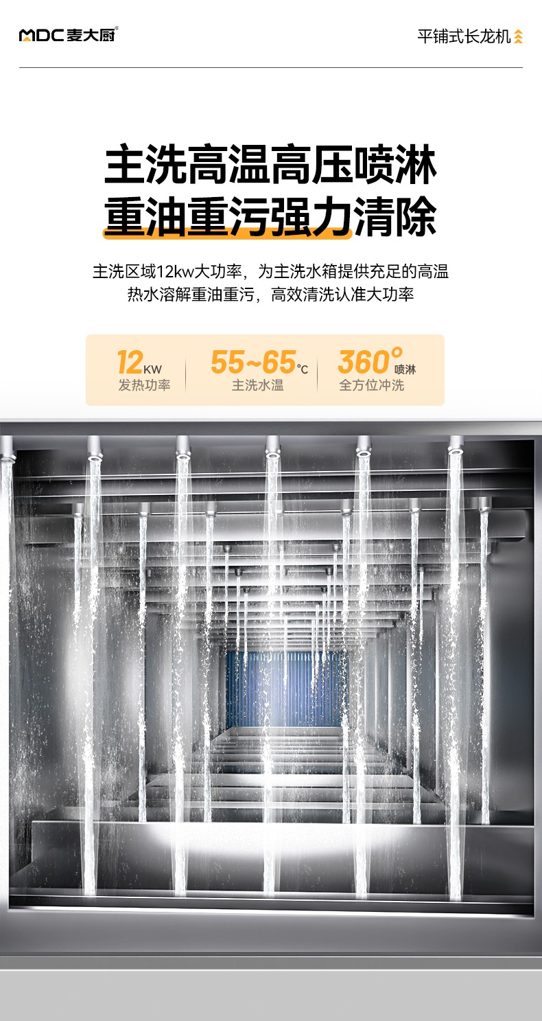麥大廚2.3m豪華款平放式單缸雙噴淋商用全自動洗碗機
