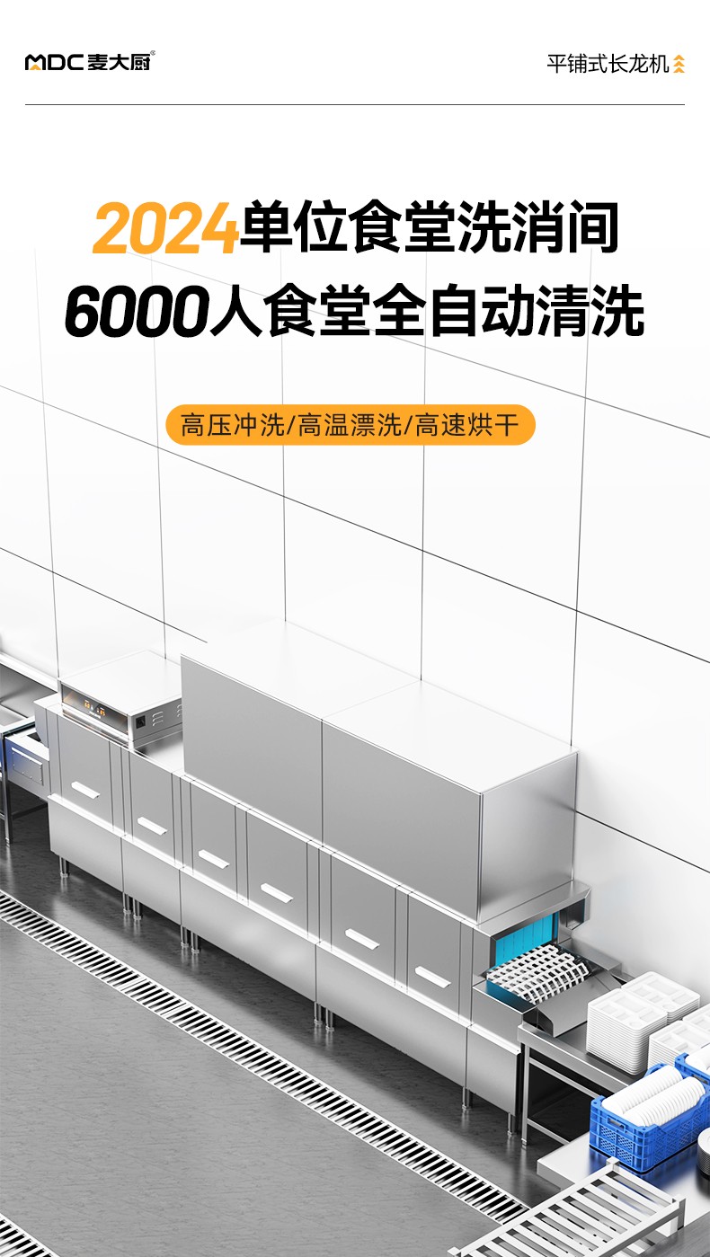 麥大廚4.9m豪華款平放式單缸雙噴淋雙烘干商用大型洗碗機