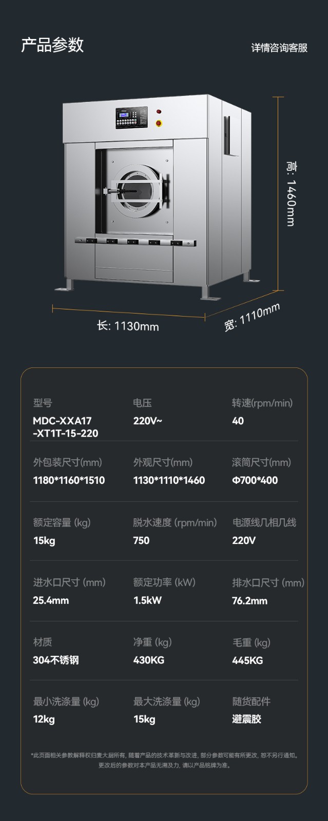 - 更多MDC商用洗脫一體機規格咨詢在線客服