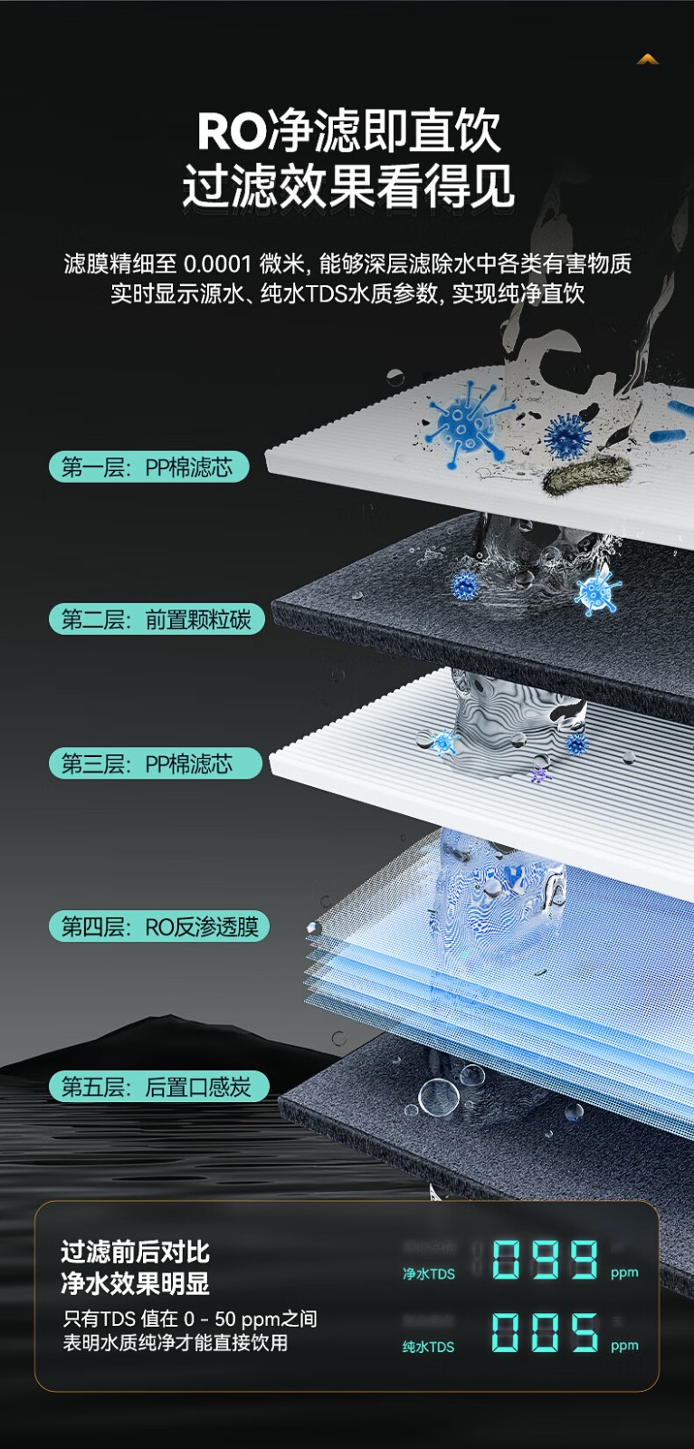 過濾方式:五級RO反滲透