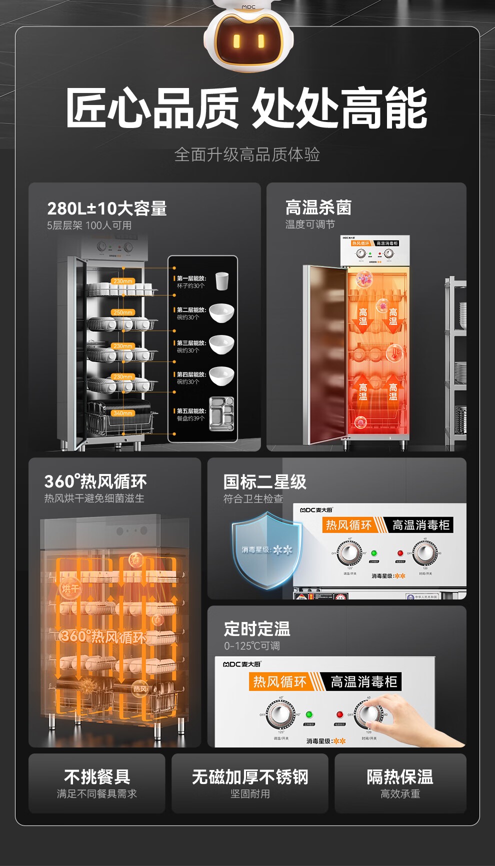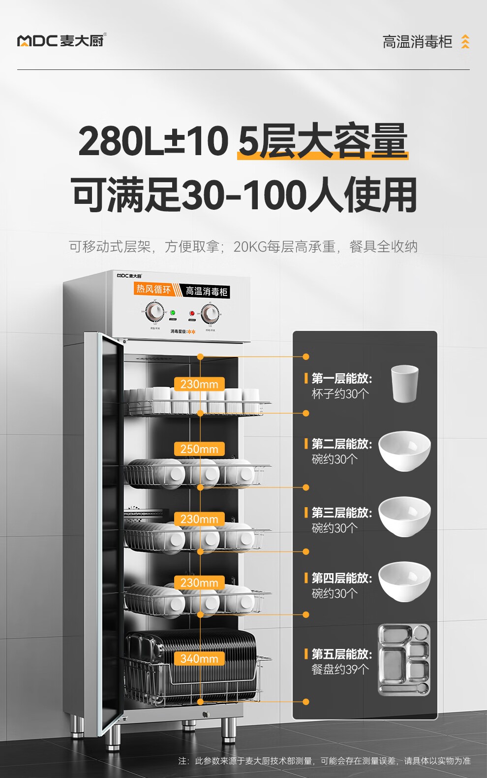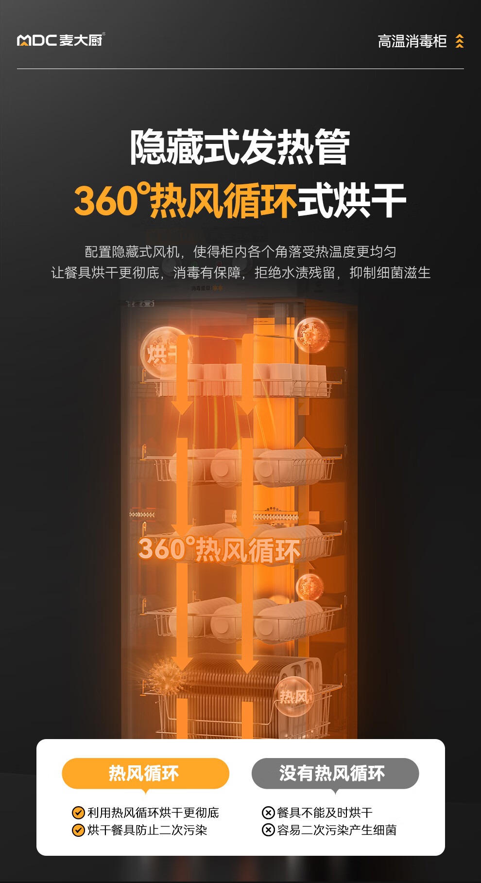 麥大廚經(jīng)典旋鈕款5層單門單控熱風循環(huán)高溫消毒柜920W