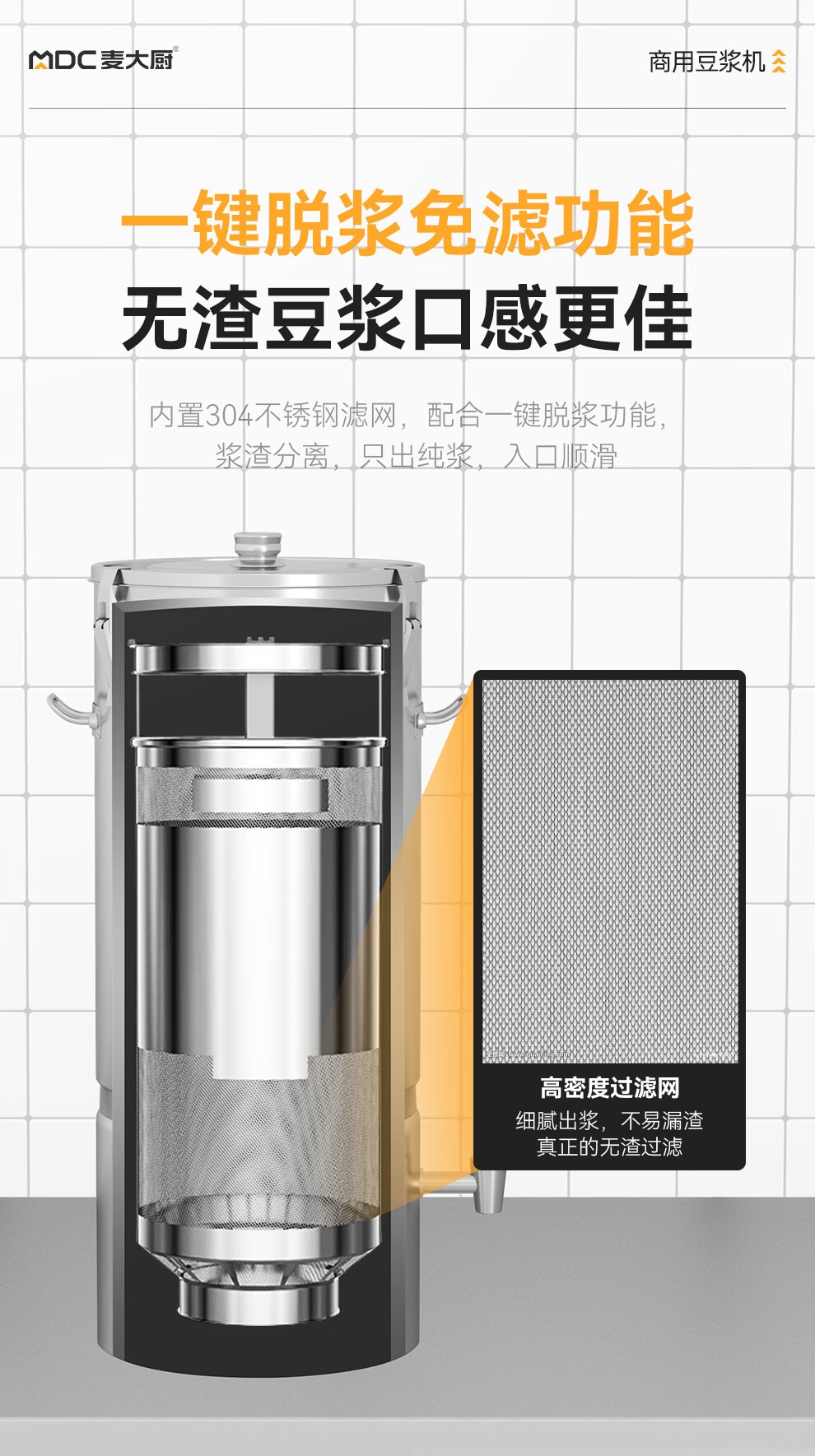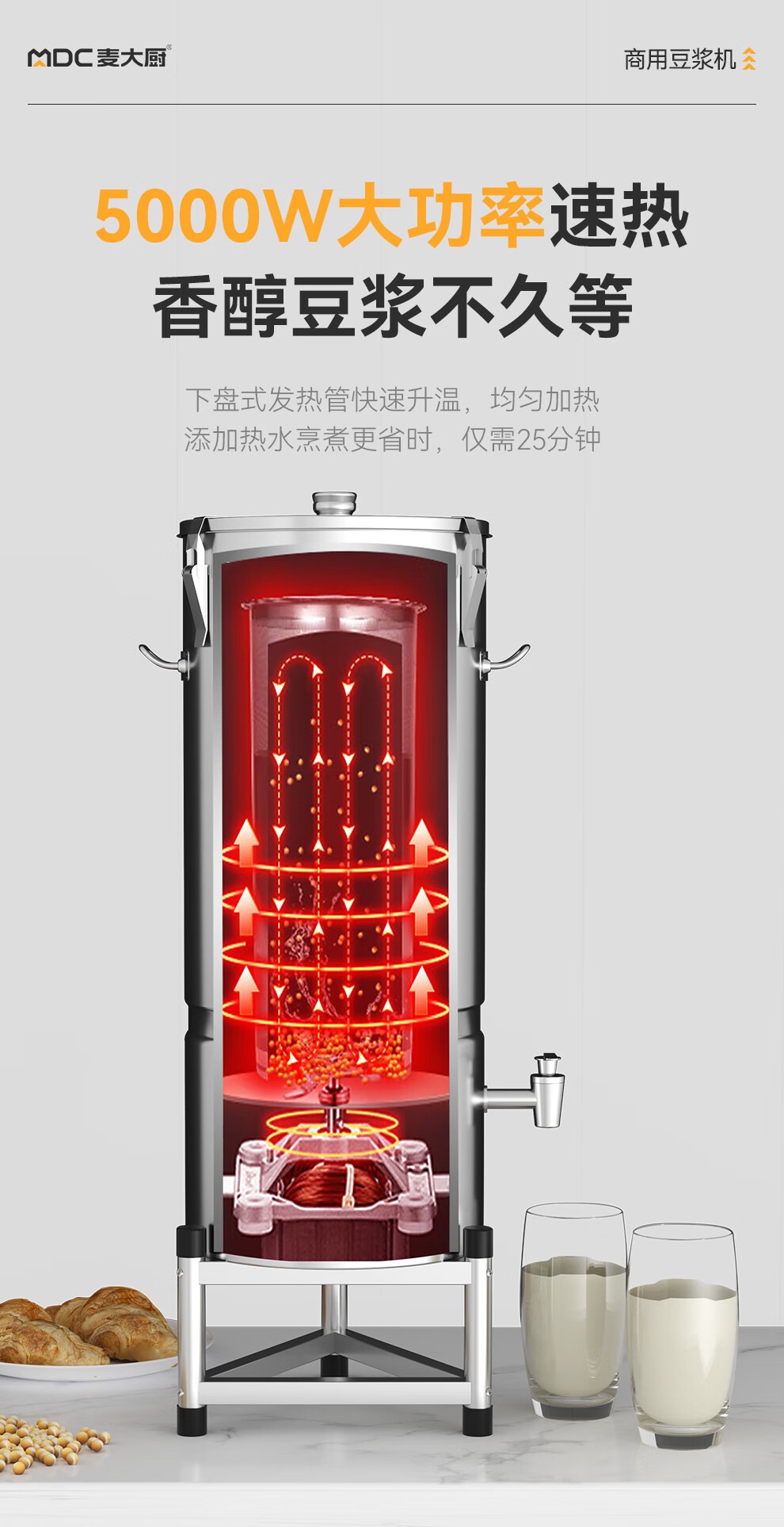 麥大廚商用豪華款單層豆漿機干濕兩用磨煮一體機40L