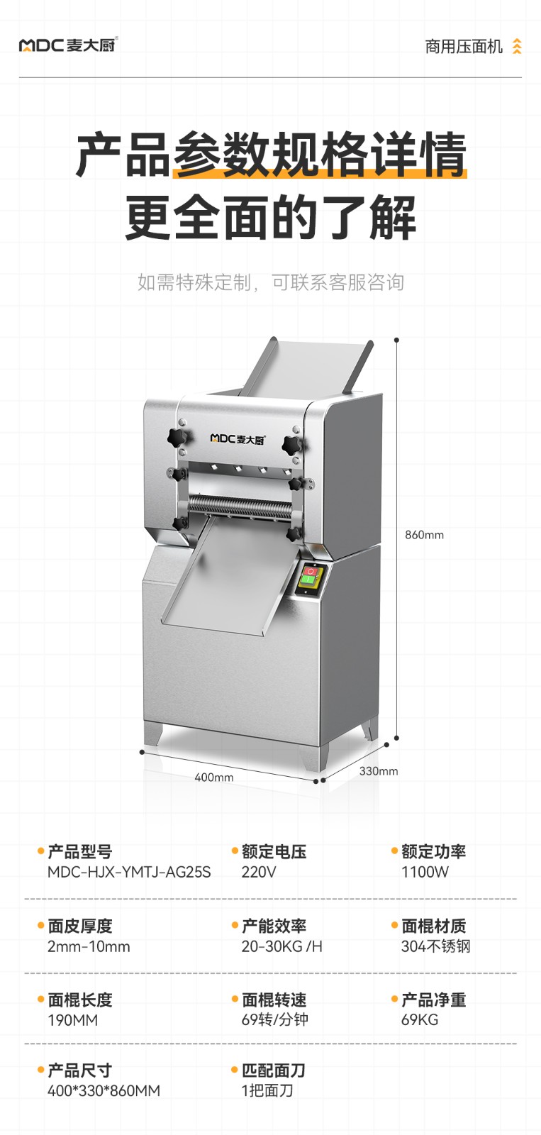 麥大廚標準款全自動軋面條機商用壓面條機1.1kw