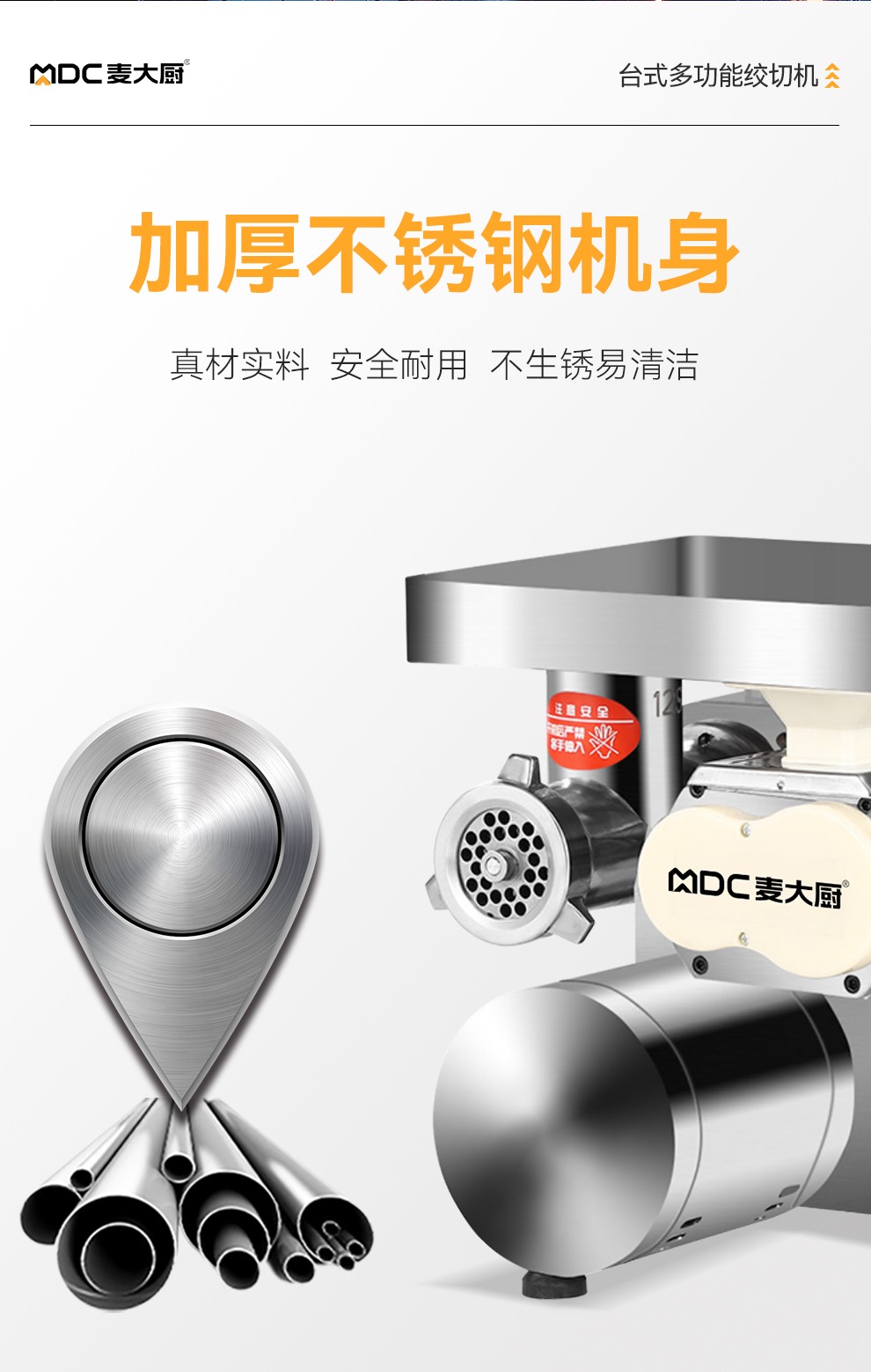 麥大廚1.8KW商用多功能可脫卸臺式絞切肉機灌腸機碎肉機