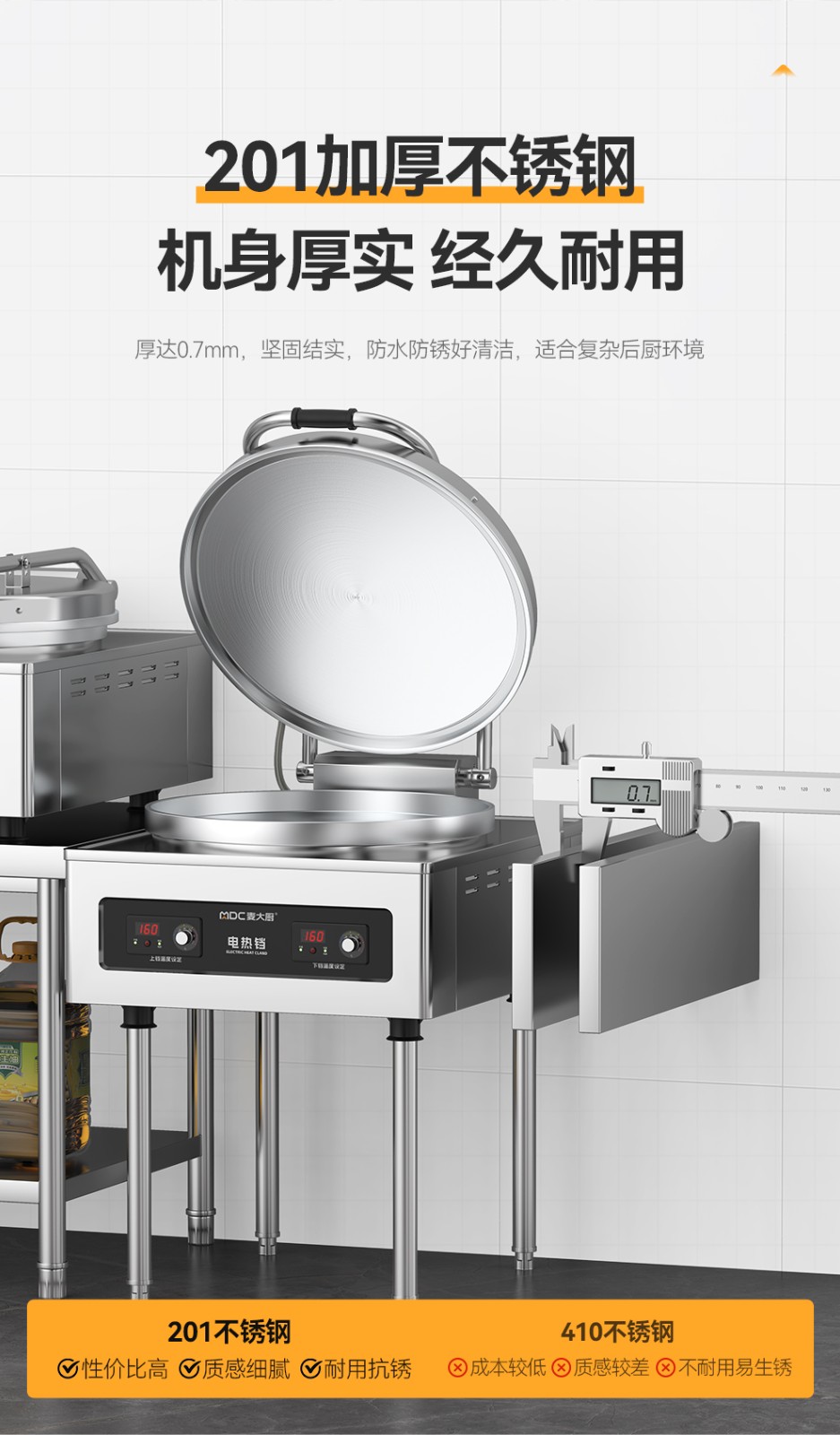 麥大廚220V食堂烙餅機數顯標準款商用電餅鐺(不銹鋼5cm)