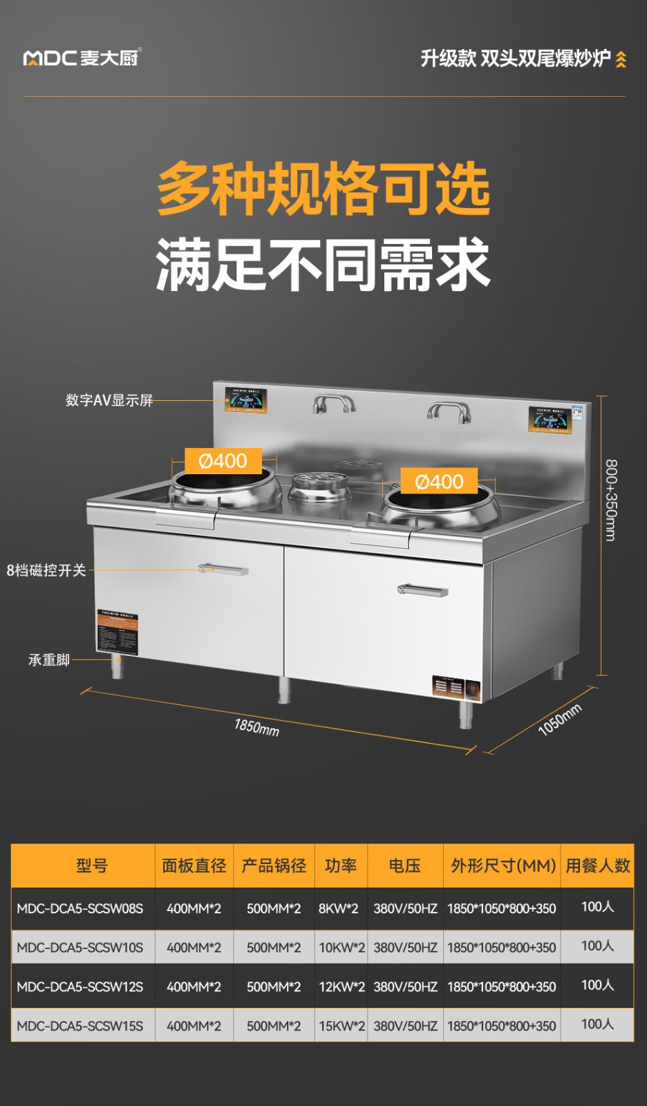 - 更多MDC商用雙頭雙尾小炒爐規格咨詢在線客服