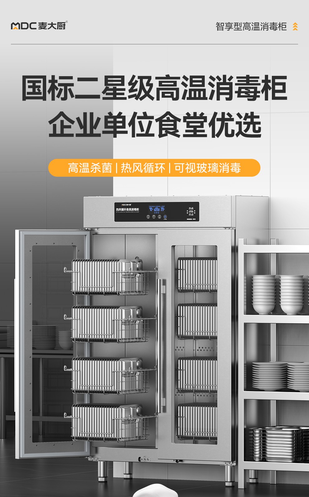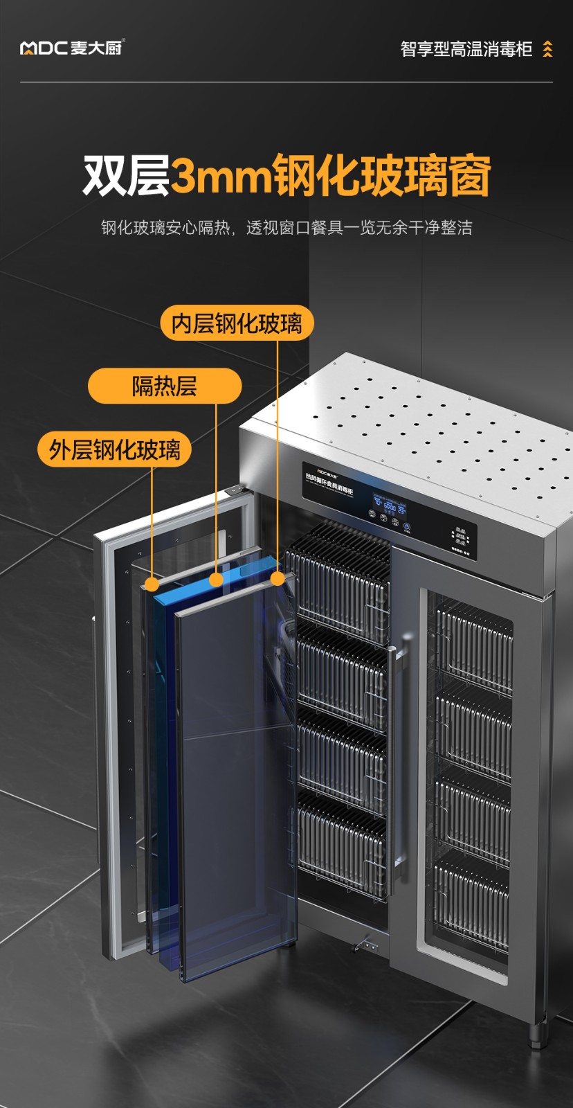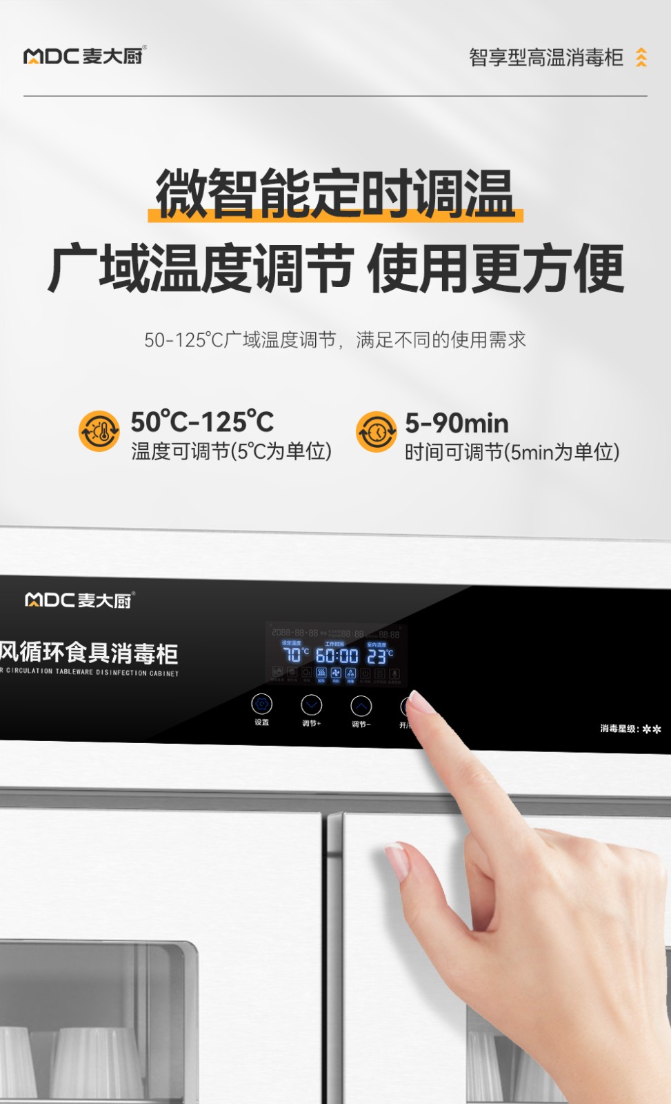 麥大廚智享型4層雙門單控?zé)犸L(fēng)循環(huán)高溫食具大透窗消毒柜