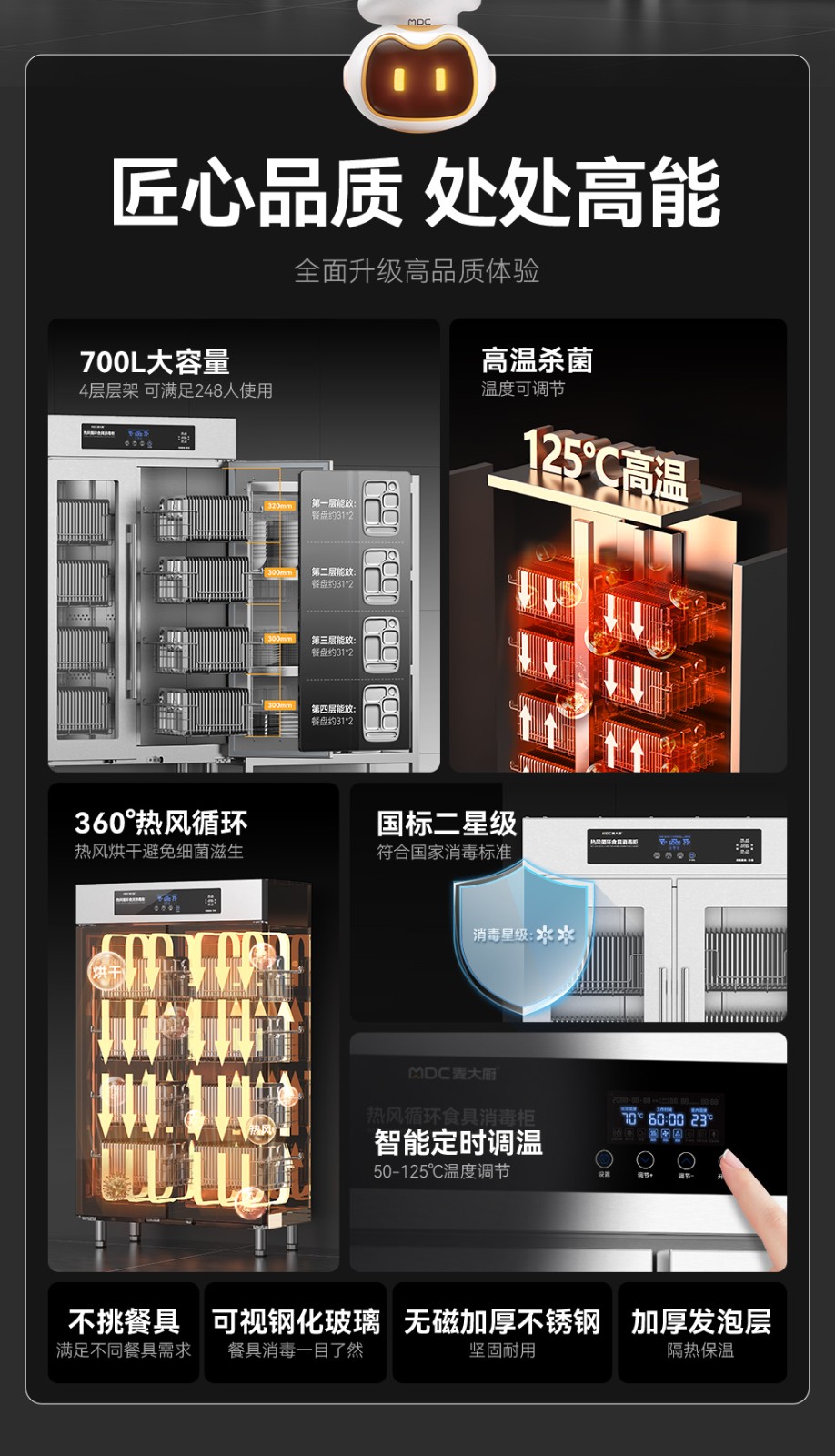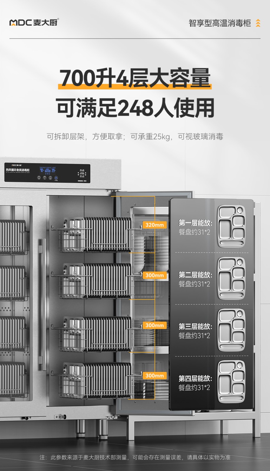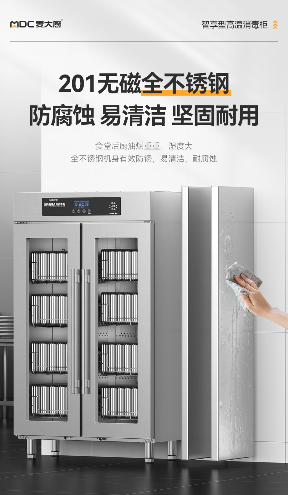 麥大廚智享型4層雙門單控?zé)犸L(fēng)循環(huán)高溫食具大透窗消毒柜