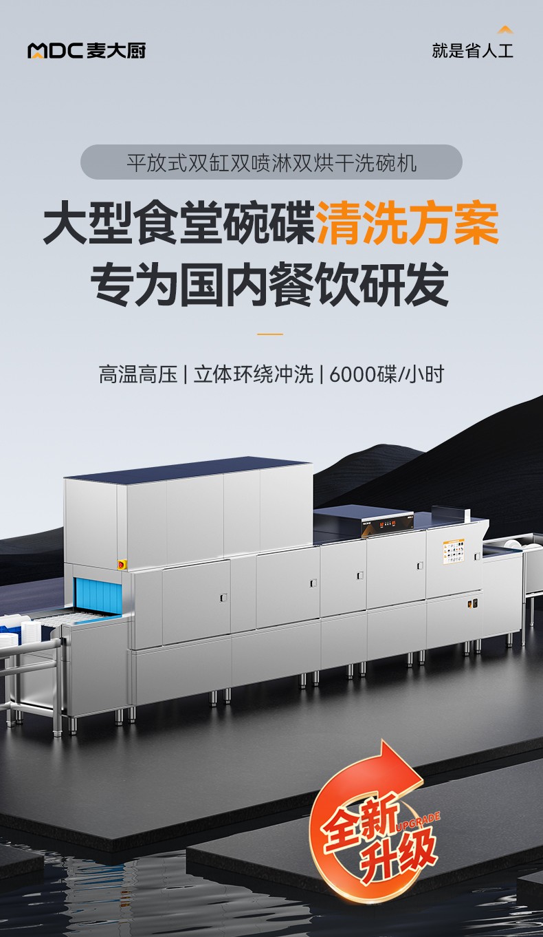 麥大廚旗艦款5.9m平放式雙缸雙噴淋雙烘干洗碗機