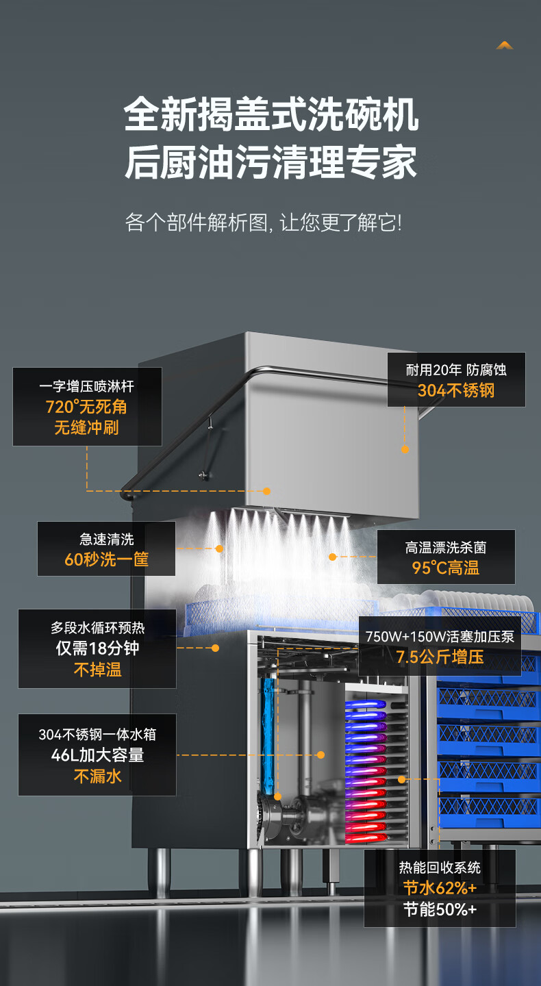 麥大廚2.0S體驗雙泵款無窗揭蓋式洗碗機商用7kw