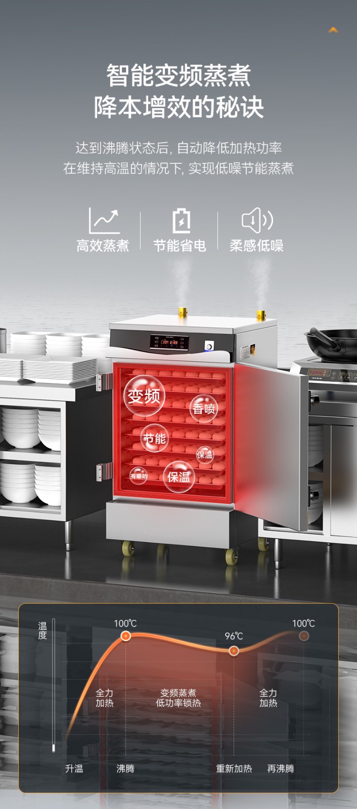 麥大廚商用蒸飯柜8盤變頻款智能電蒸箱電熱蒸飯車全自動蒸柜