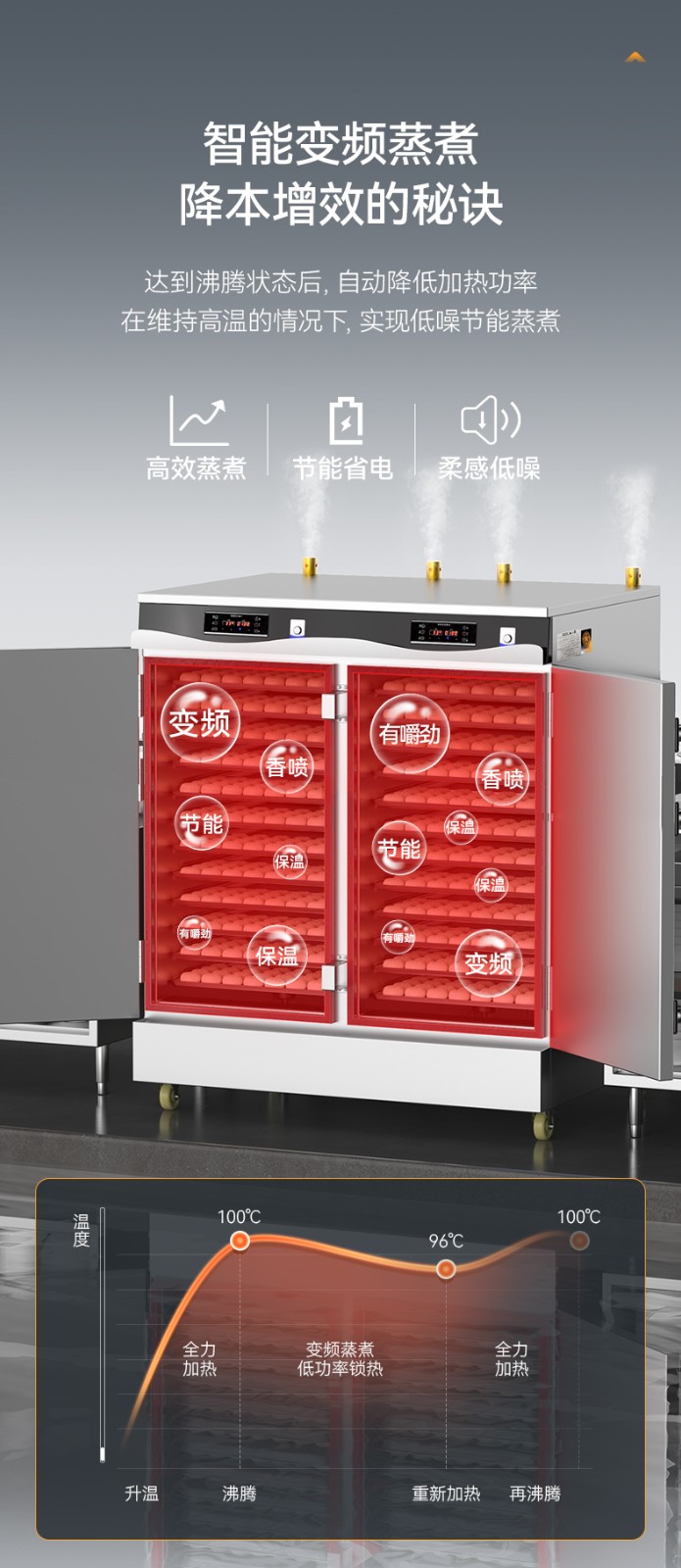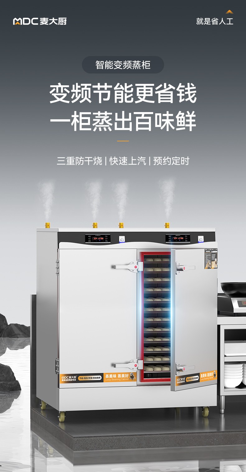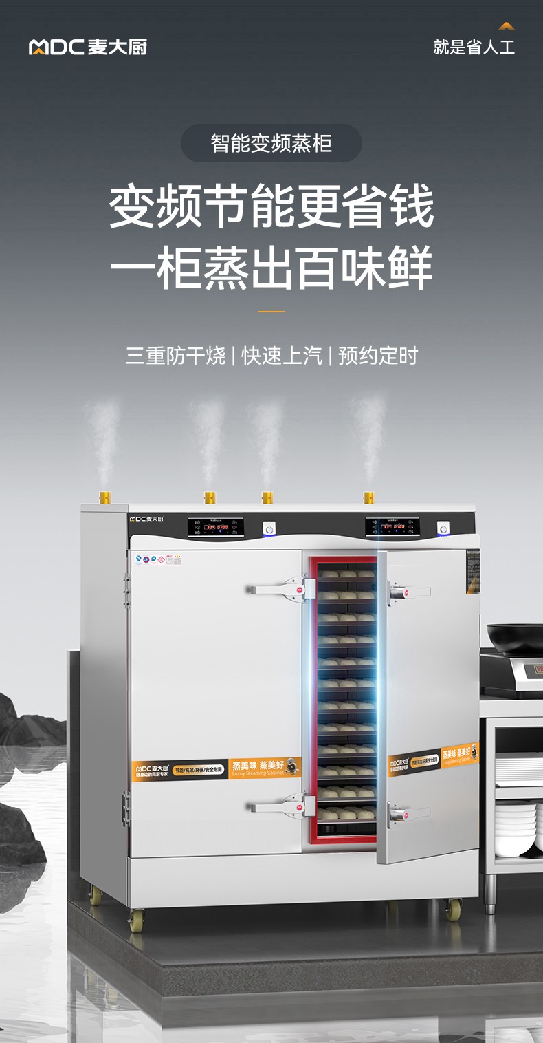 麥大廚商用蒸柜48盤變頻款雙門電熱蒸箱蒸飯車全自動蒸飯柜