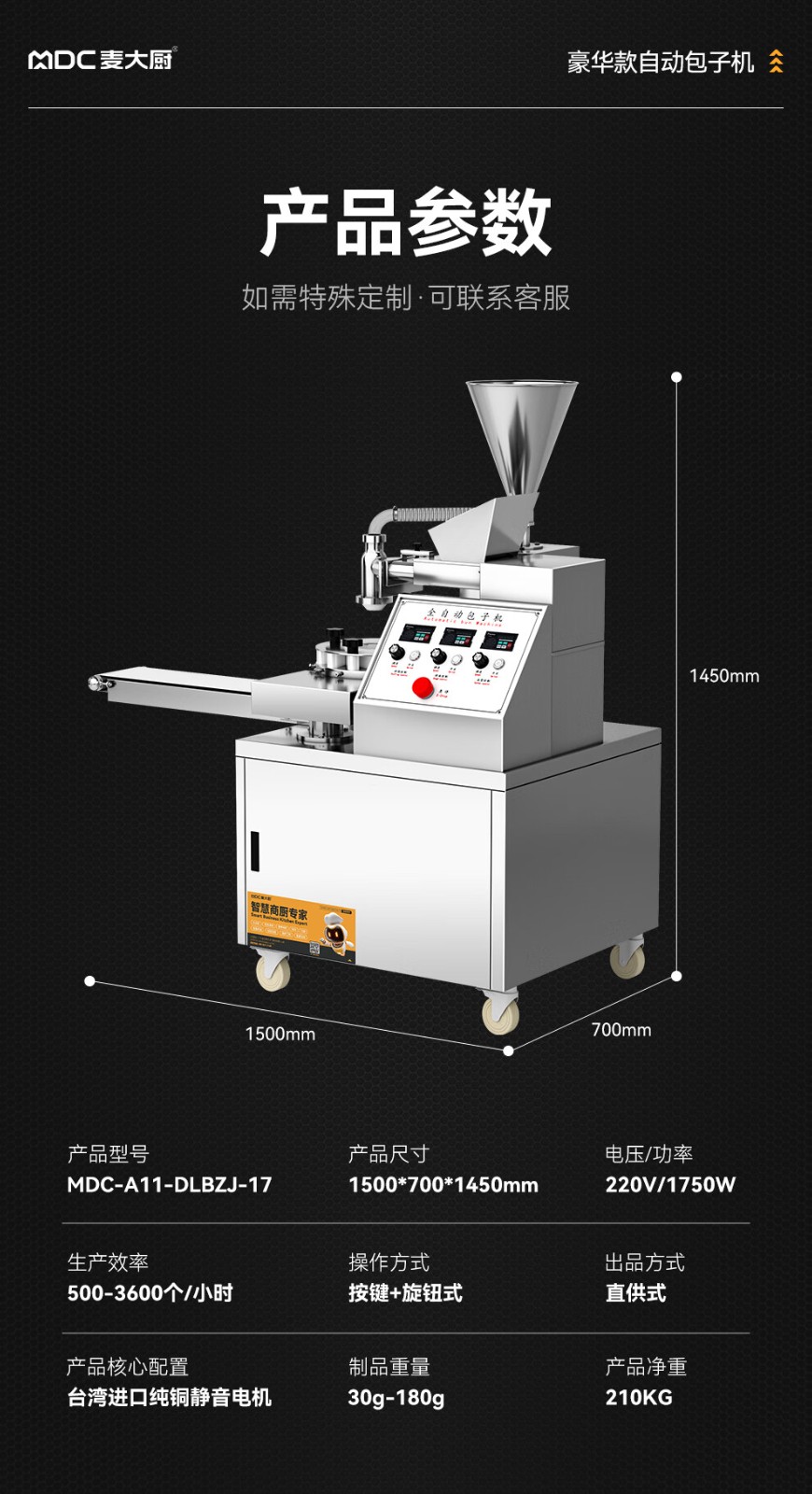 - 更多MDC商用包子機規格咨詢在線客服
