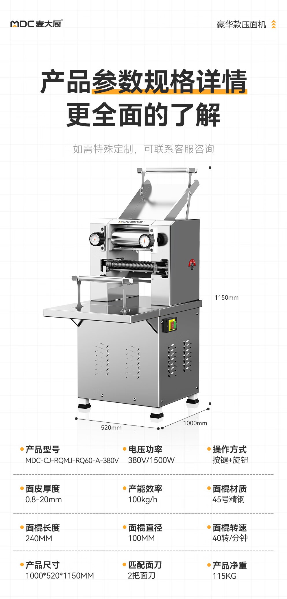 麥大廚揉切面機商用面皮軋面機自動壓面機380V 80-100KG[豪華款]