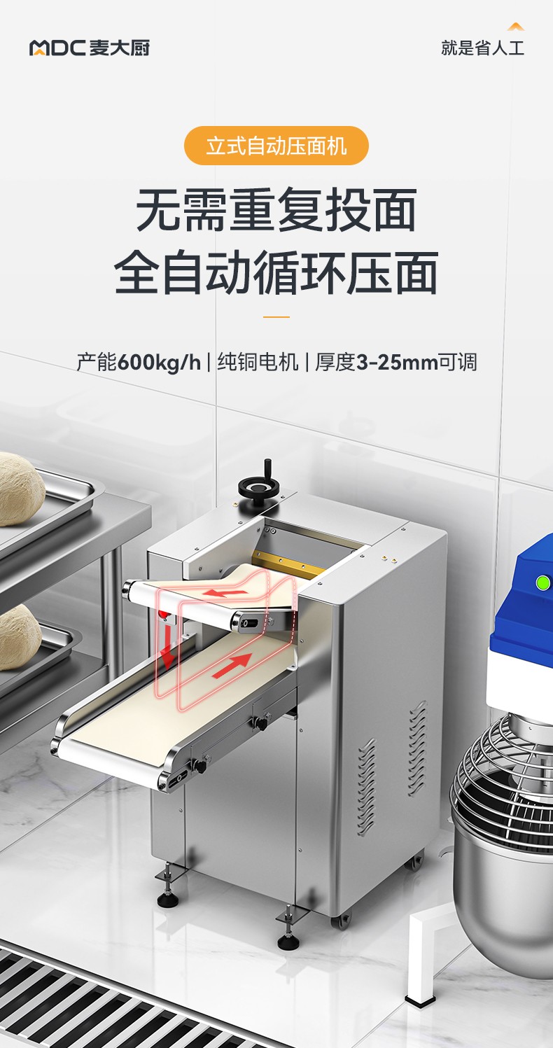 麥大廚自動壓面機商用面皮軋面機揉切壓面機三相自動壓面機