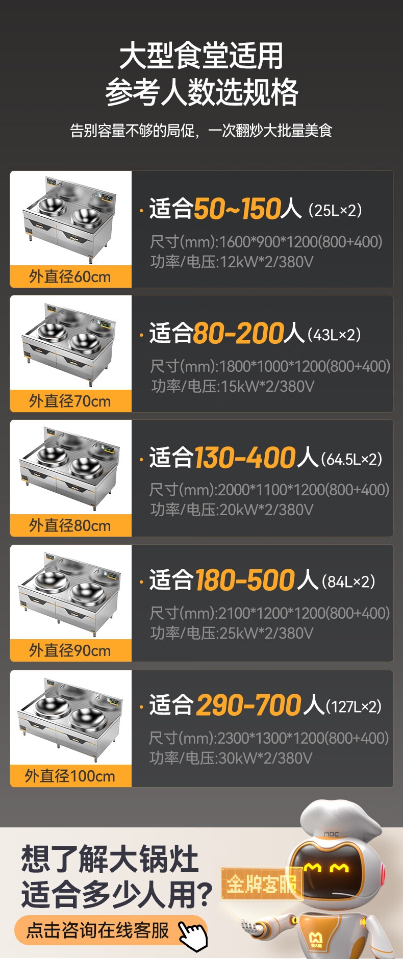- 更多MDC商用大鍋灶規格咨詢在線客服